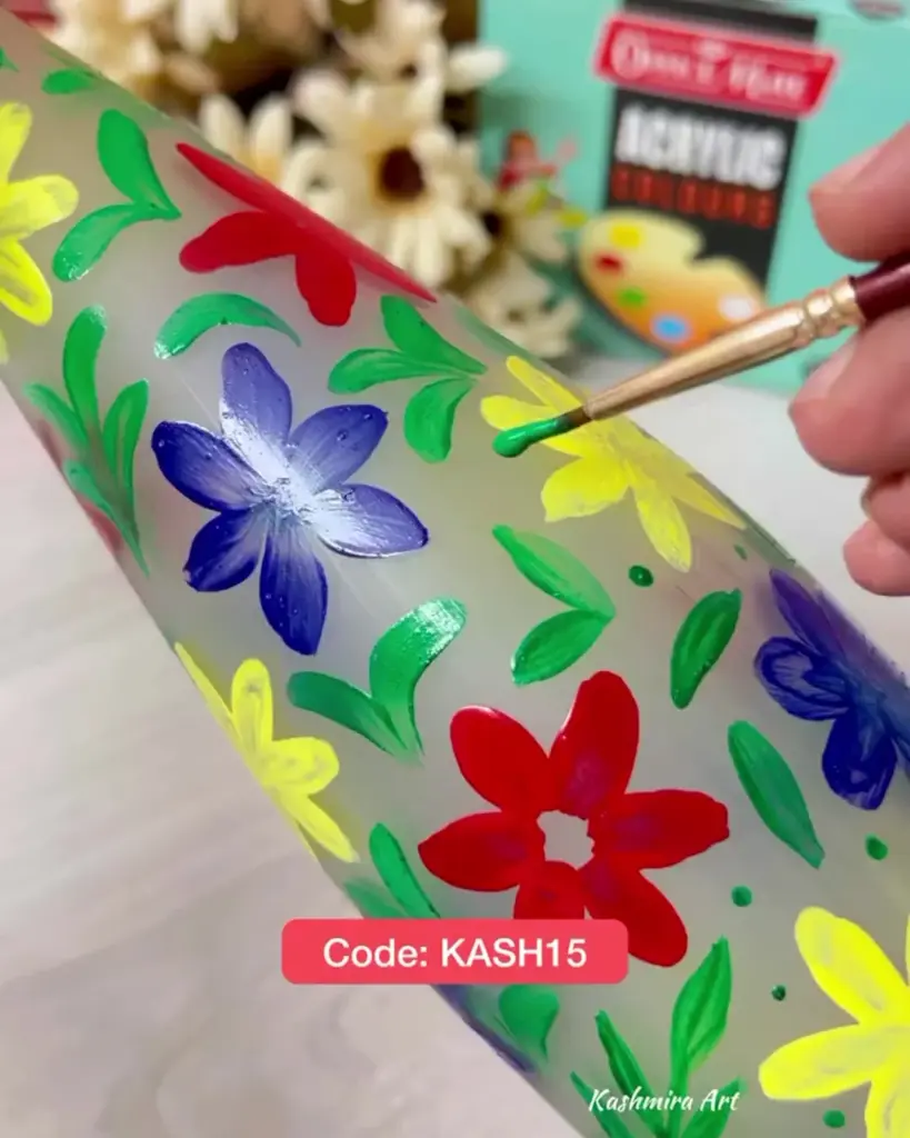 - How to do it: Clean the glass bottle thoroughly and apply a base coat if needed. Use fine-tip brushes or acrylic markers to create floral patterns, abstract art, or even scenic landscapes on the surface.