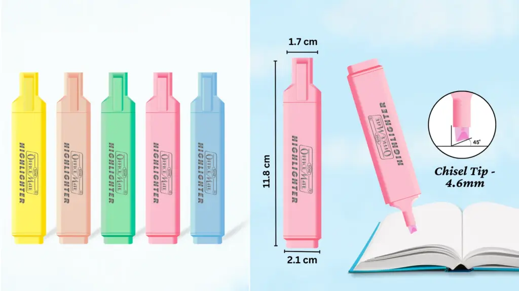 Bright, bold, and impossible to miss. Make your notes pop with vivid fluorescent shades that glide smoothly and draw attention to every key point. Perfect for study sessions, journaling, and color-coding.