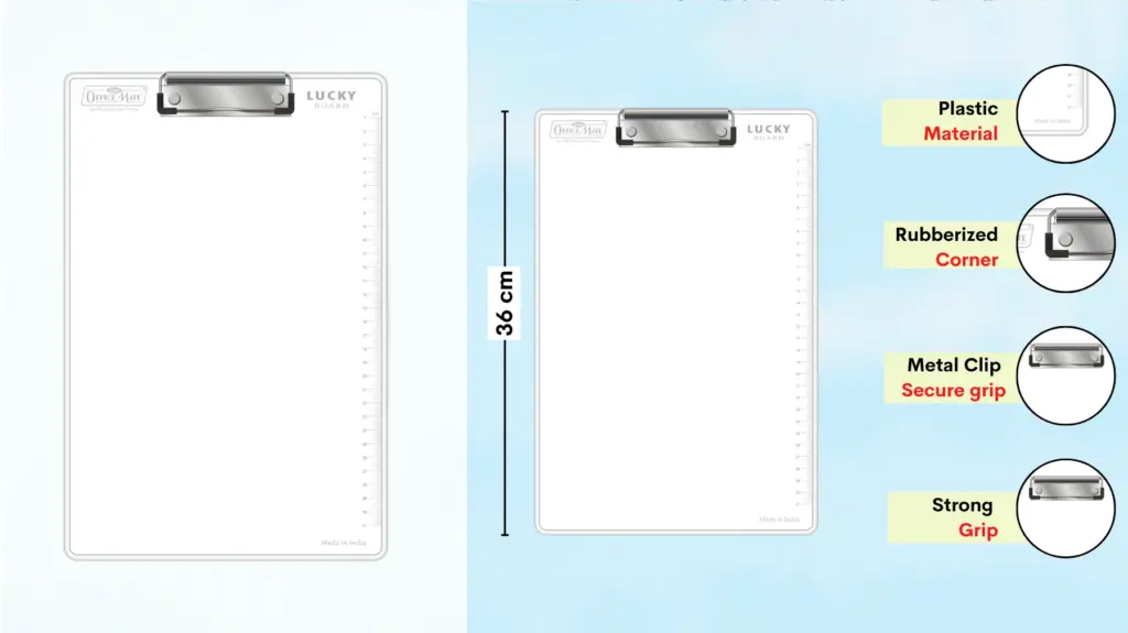 Strong, lightweight, and designed for exam halls — with a sturdy clip and smooth surface for stable writing wherever you sit.
