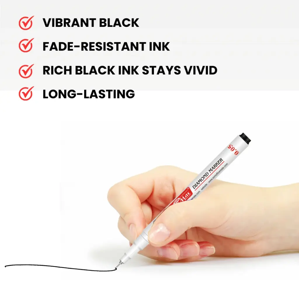 If you work with diamonds or glass, precision is everything. The Diamond Marker with a 0.05 mm ultra-fine tip gives you the confidence to make every mark count. With its permanent, fade-resistant black ink and smooth application, it’s the best marker for diamonds and glass surfaces.