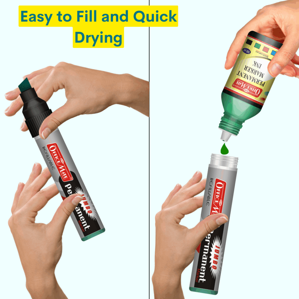 Mark boldly and clearly with jumbo permanent markers, available as a single marker or a pack of 6 in Black, Blue, Red, and Green. Featuring a 10 mm chisel tip and jumbo barrel, these markers are perfect for labeling, signage, crafting, and multi-surface writing.