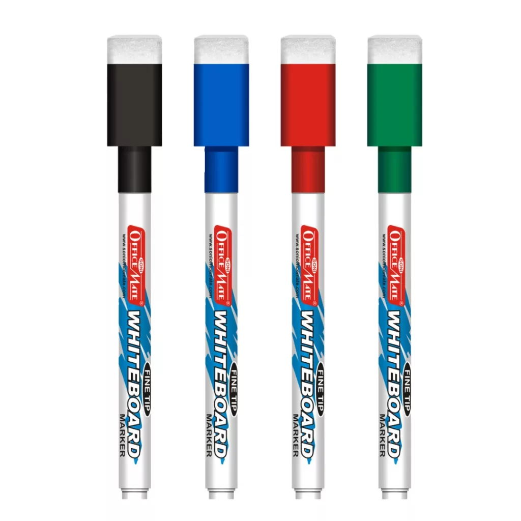 8. Fine Tip Whiteboard Marker with Duster on Cap (Pack of 4)