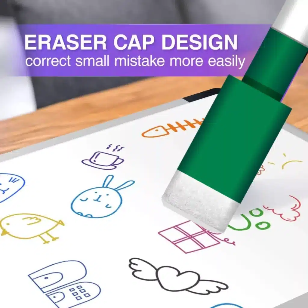 These markers come with a built-in duster cap, making it easy to wipe off your whiteboard without extra cleaning tools. With a 2.5 mm fine tip, they offer excellent precision, and their refillable feature ensures long-term use. Ideal for classrooms, offices, and presentations, these markers are non-toxic, safe for children, and come in vibrant colors for enhanced visibility.
