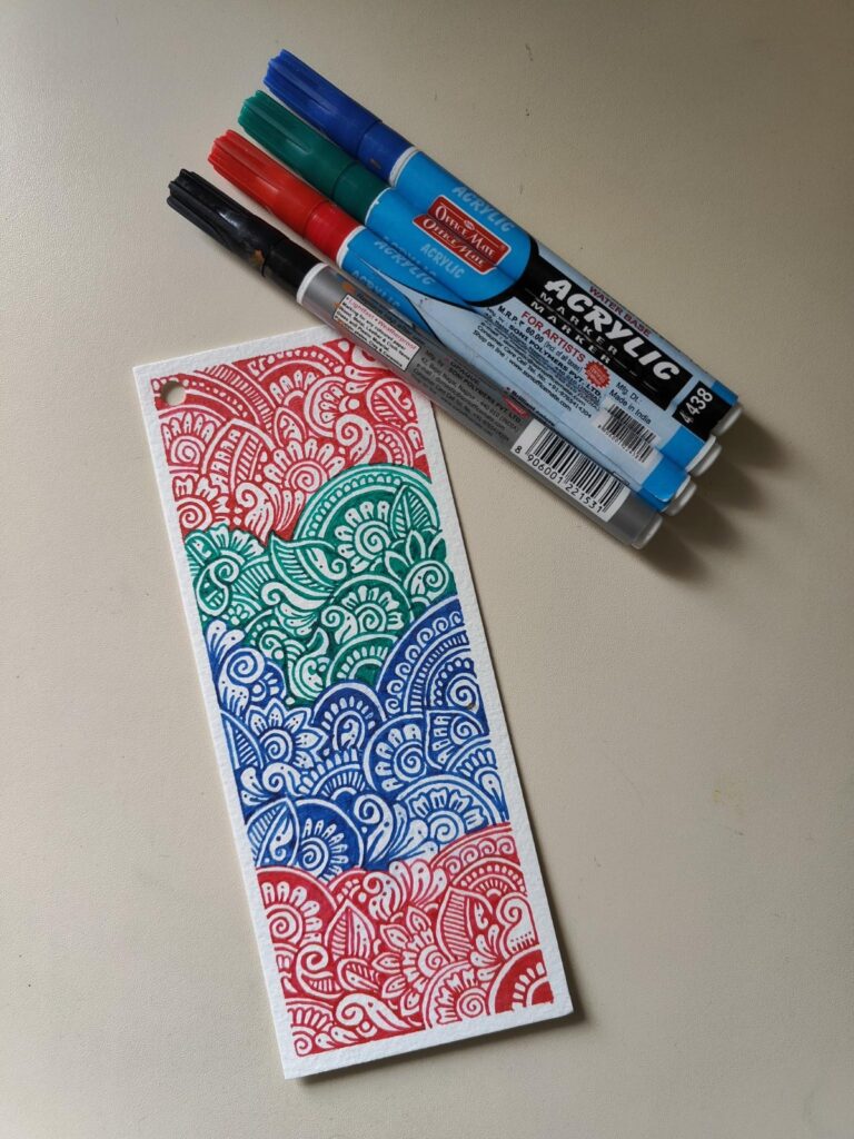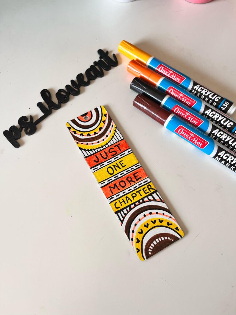 Turn cardstock or canvas sheets into beautiful bookmarks with floral borders, quotes, or abstract art. Acrylic markers dry quickly and won’t smudge, making them perfect for layered designs and fine details.