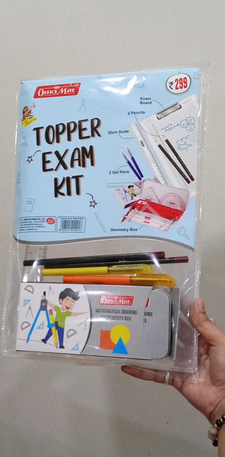 I’m really happy with the Topper Exam Kit! It has everything I need—geometry box, pencils, pens, a scale, and a big exam board. It’s made studying so much easier and keeps me organized for my exams!