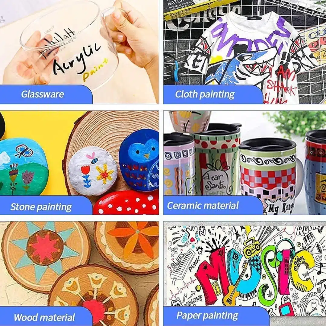 6. Multi-surface compatibility: Ideal for canvas, wood, paper, glass, plastic, and ceramics