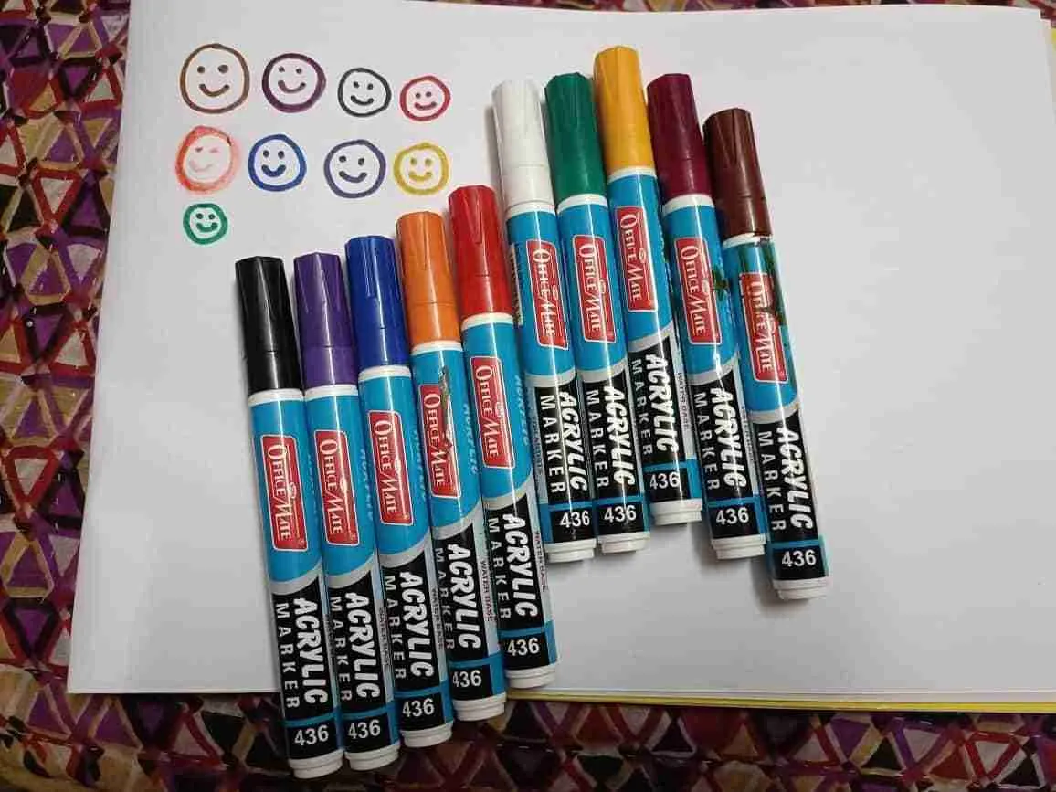 The acrylic markers will appear on dark or black surfaces because they are opaque. The interior paint is highly pigmented. Drawing with a white or yellow acrylic marker, for instance, on a dark rock or a black poster board will produce a solid and noticeable colour (some light colours may require a second pass for full brightness, but they are meant to cover). Because of this, they work well on projects with dark paper, dark textiles, or any other coloured background because the colours will stand out and not be overshadowed.