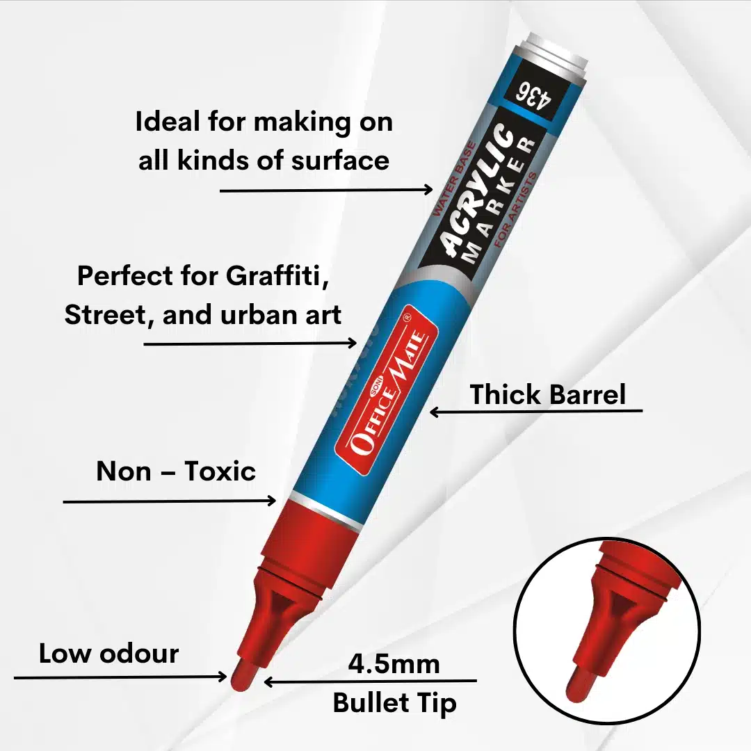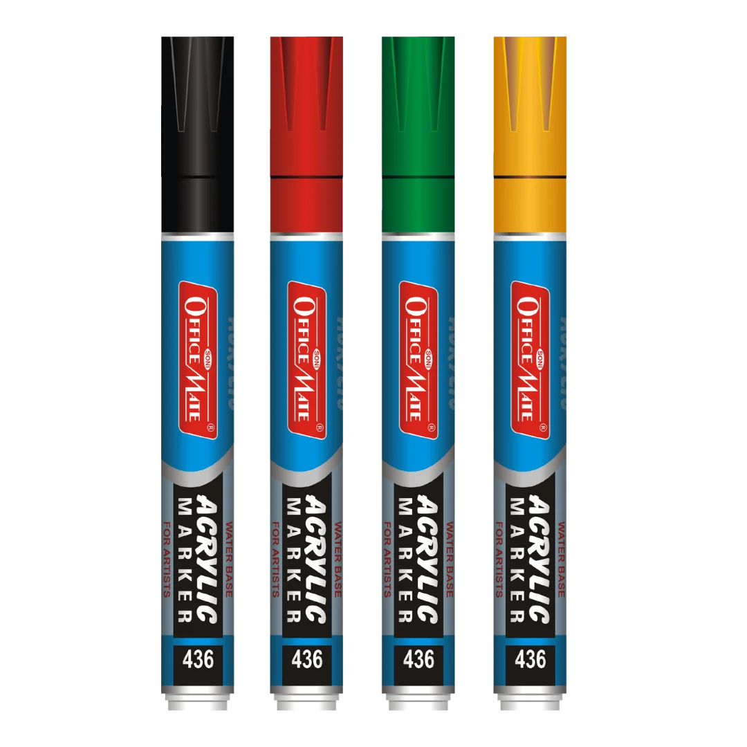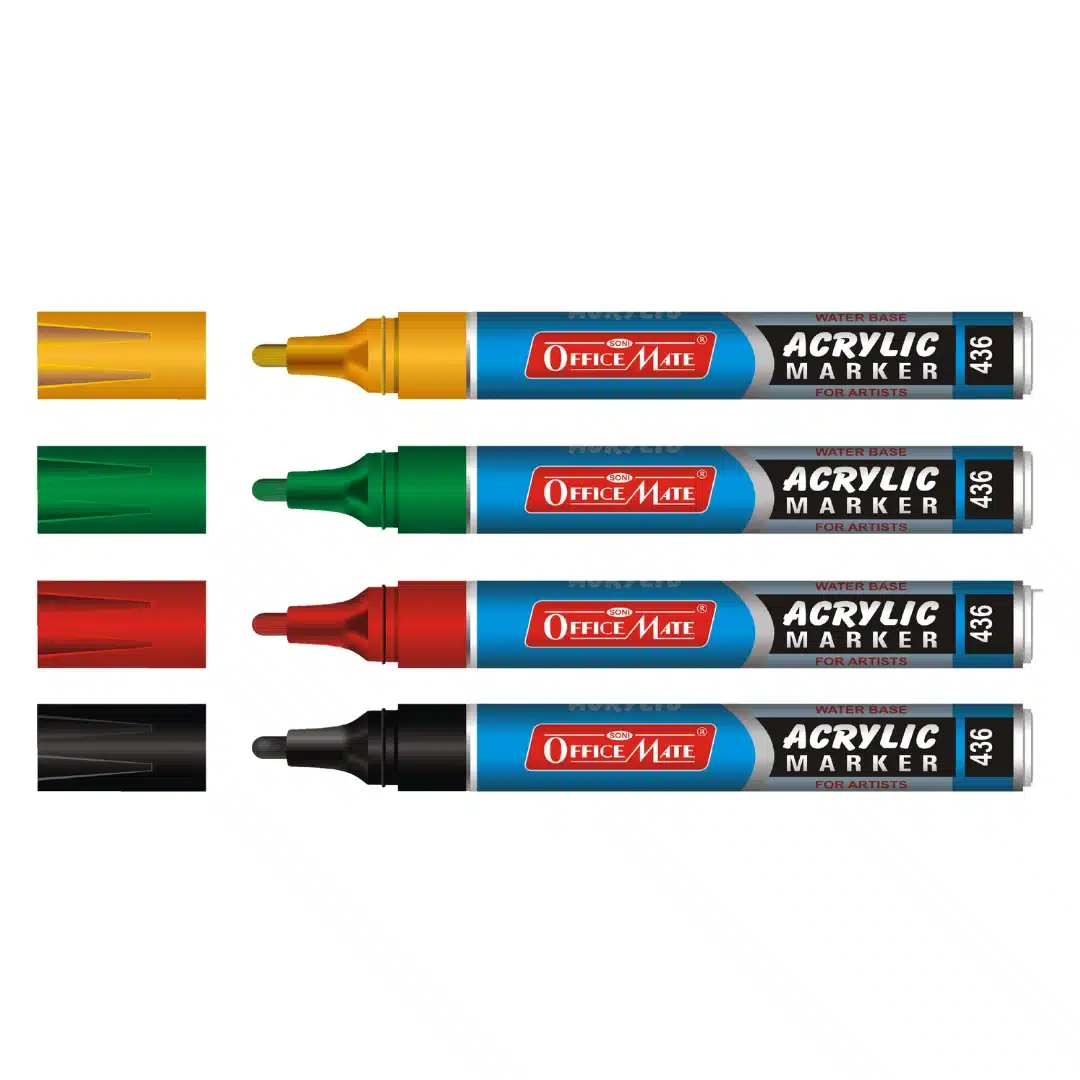 The Soni Officemate Acrylic Marker 4pcs set provides versatile application and vibrant colors, perfect for various art projects