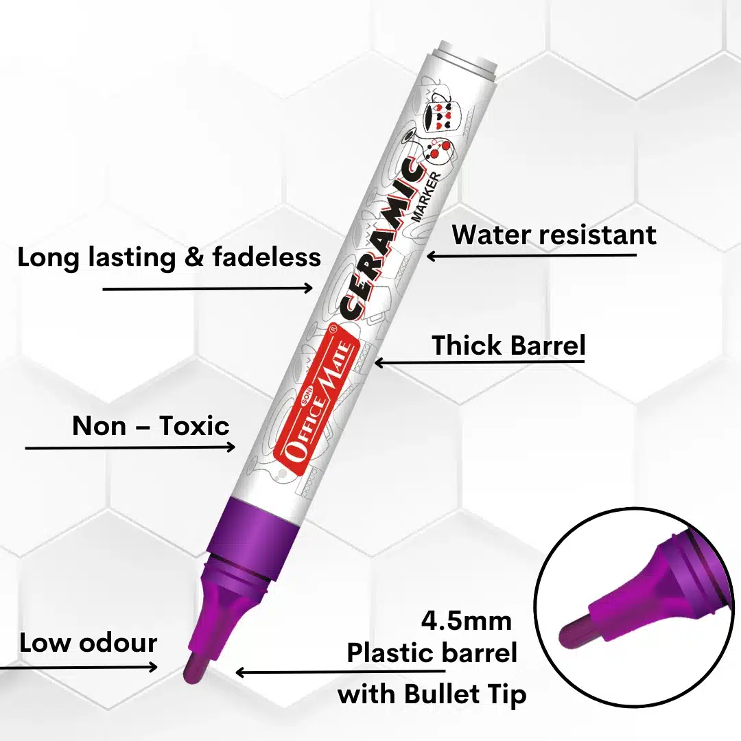 Our ceramic markers feature a medium bullet tip that offers the perfect balance between precision and coverage. It’s fine enough for outlining designs or writing text with good control, yet broad enough to fill in shapes and create bold lines. The tip is also built to be durable, so it holds up well when used on hard surfaces like ceramic or glass without wearing down quickly.
