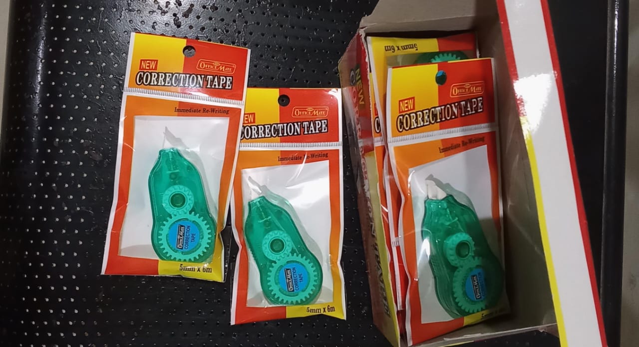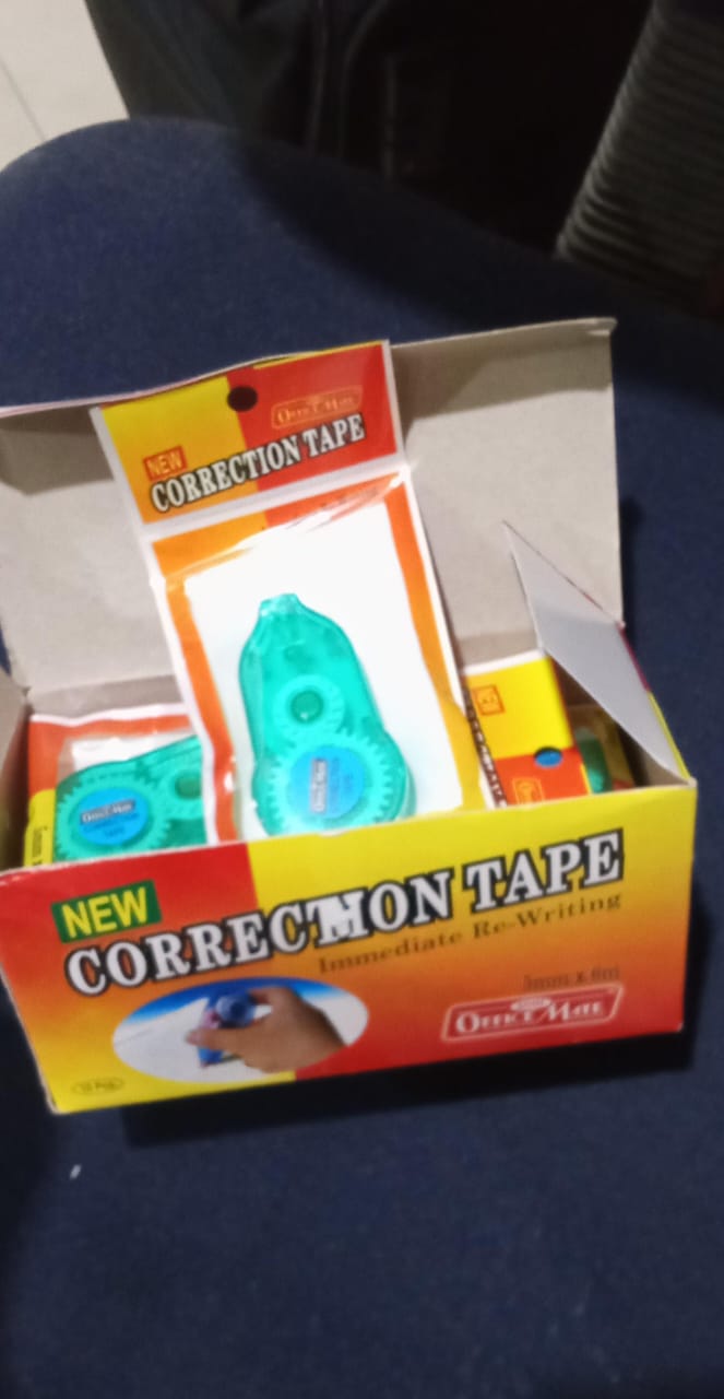 Another help to correct things are the correction tape that can hide a single letter or a sentence.