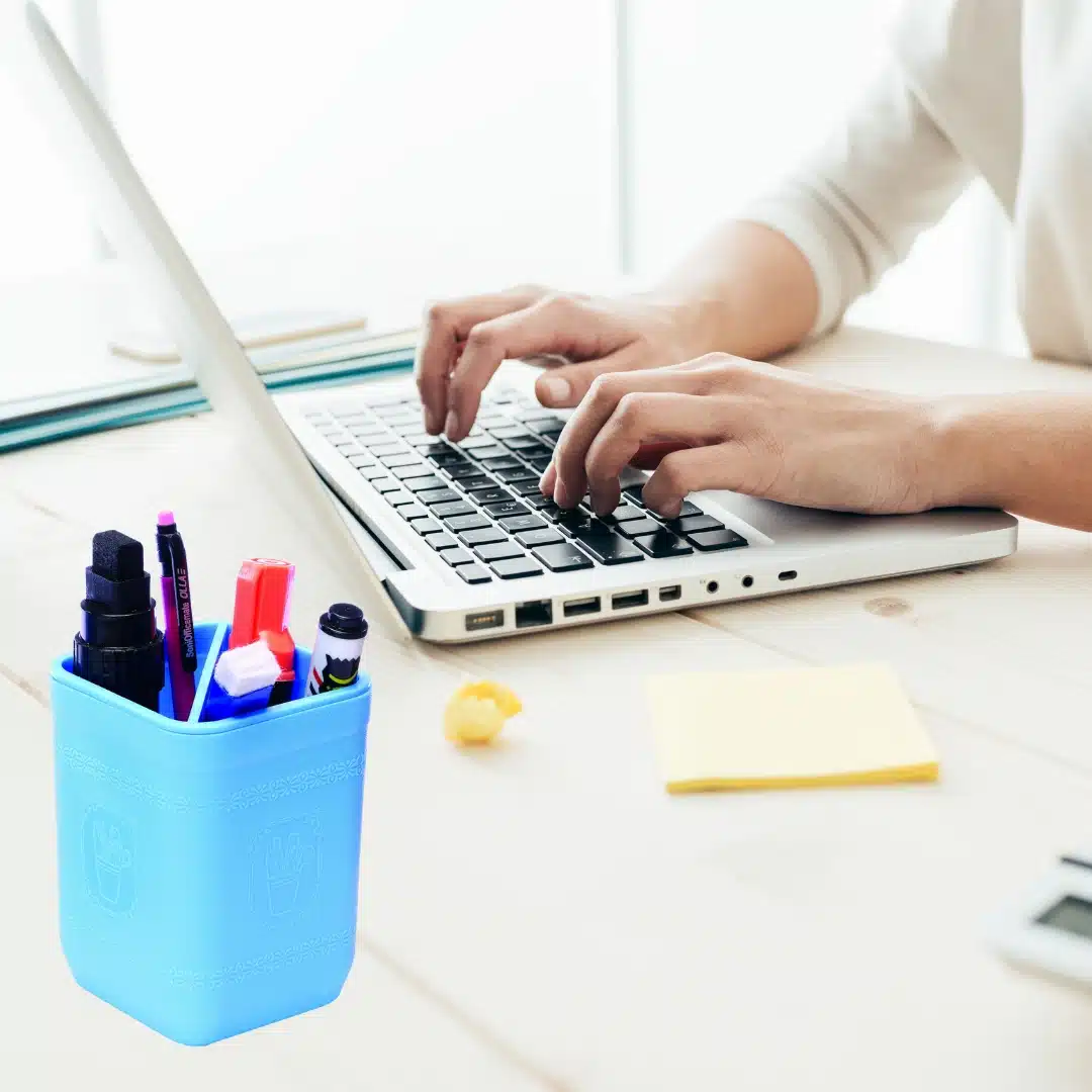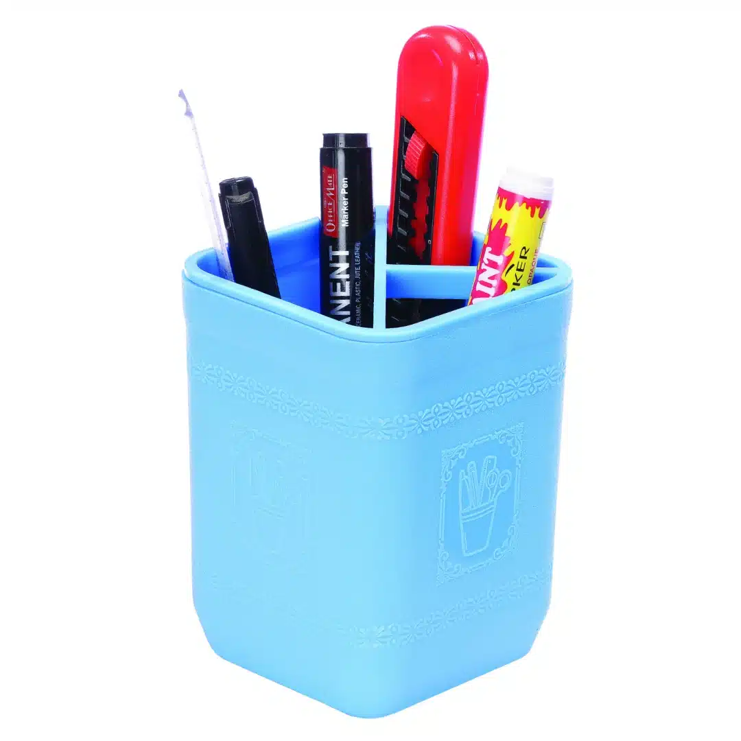 The pen stand is composed of a sturdy, premium plastic. It looks fantastic on a desk thanks to its sleek, contemporary design and smooth finish. It is strong and able to support the weight of several pens, pencils, scissors, etc. without toppling over, even though it is made of plastic. Unlike metal holders, plastic is also easy to clean and resistant to corrosion and rust.