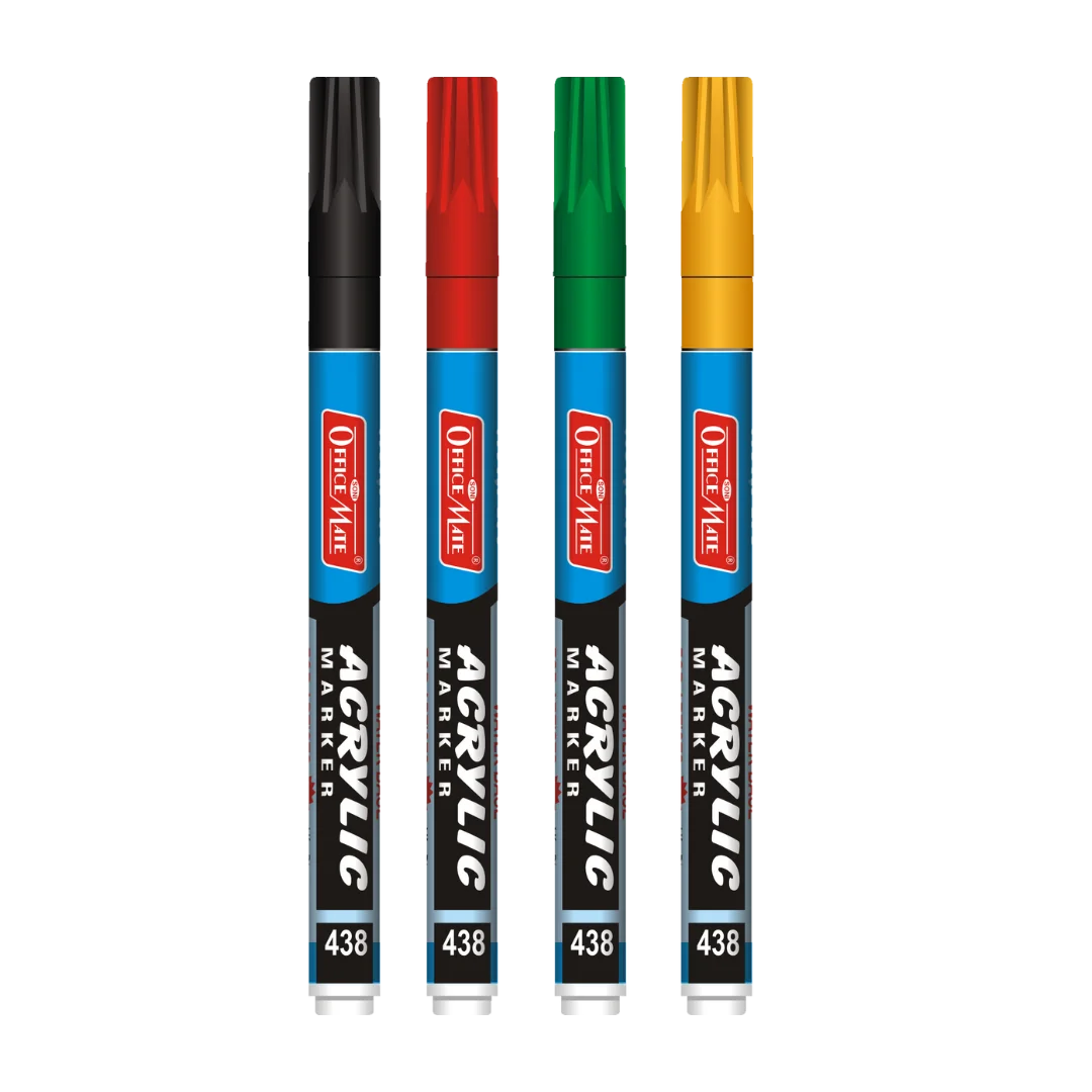 We have a large selection of acrylic paint markers. They frequently come in packs of eight, twelve, or even twenty-four colours. Primary tones (black, white, red, blue, yellow, and green) are followed by secondary and tertiary hues (orange, purple, pink, light blue, lime, etc.). Additionally, some sets feature metallic hues like silver and gold. Every colour is vivid and opaque. You can even layer them because they're acrylic; after one colour dries, you can draw over it with another. Your projects can be very creative with this colour scheme.