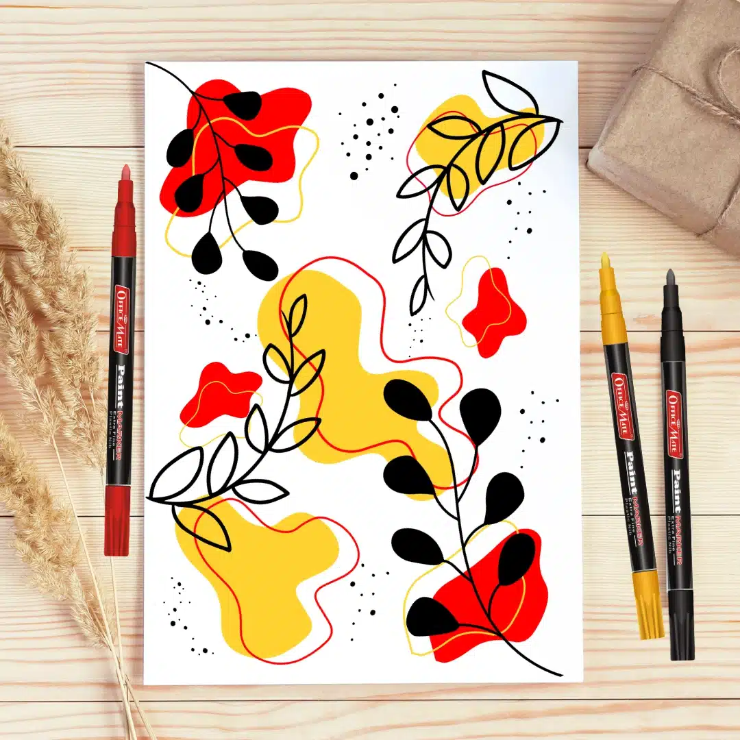 1. Fine Tip Paint Marker Set (4 pcs) featuring vibrant colors: Black, Red, Green, and Yellow