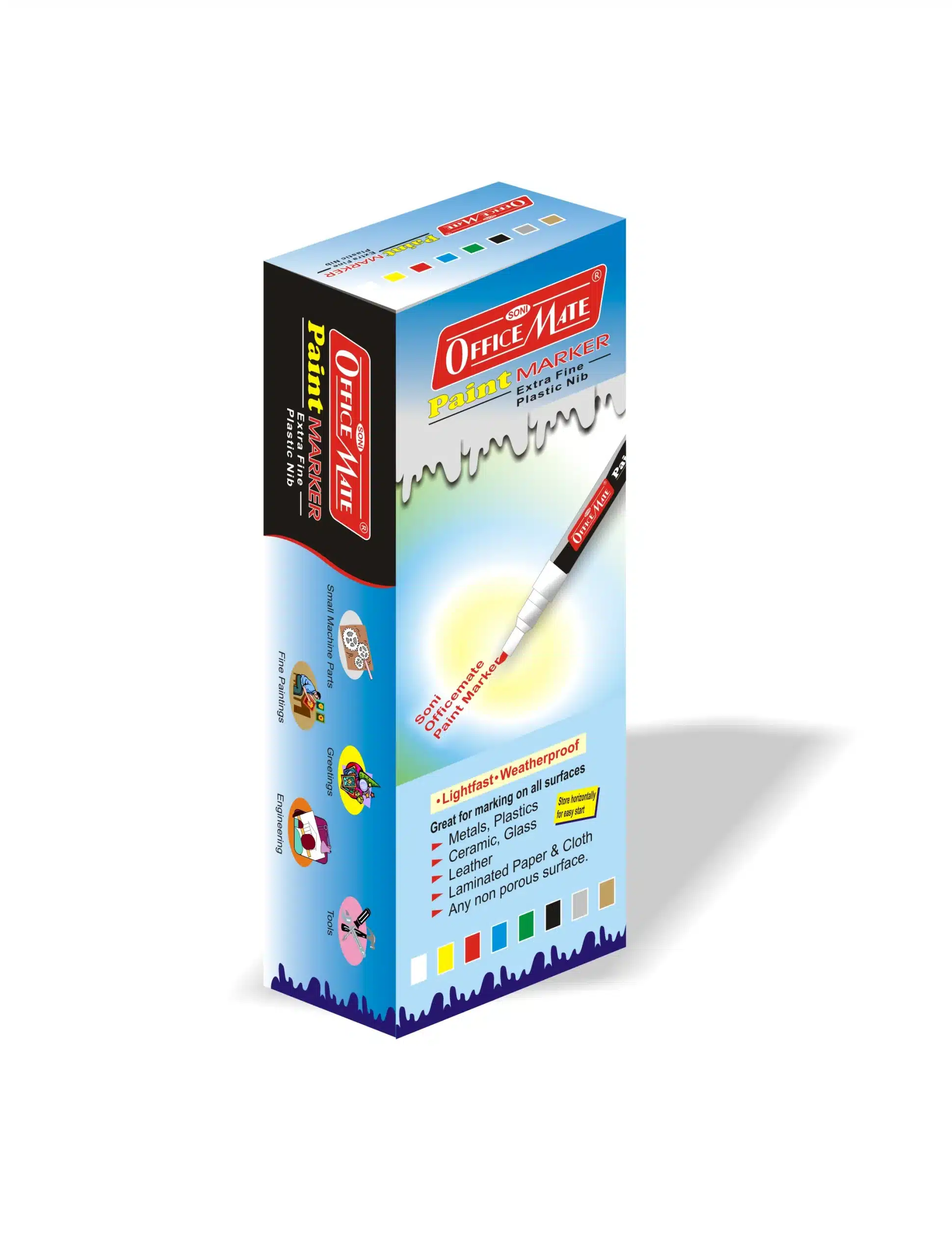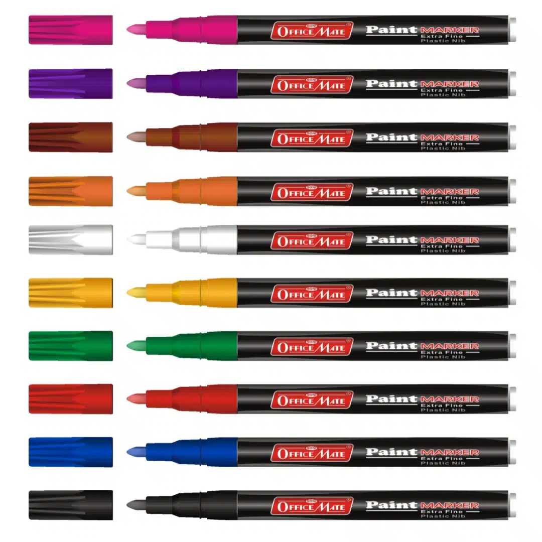 We offer our paint markers in a wide variety of bold, vibrant colors to suit different creative and professional needs. Standard options include black, white, red, blue, yellow, and green—each formulated to deliver strong, opaque coverage on both light and dark surfaces. In addition, we also provide metallic shades like gold and silver, which add a striking, reflective finish that stands out especially well on dark or glossy surfaces. Whether you're customizing a project, labeling tools, or creating detailed artwork, our color range gives you the flexibility to work with both bright tones and elegant metallics.