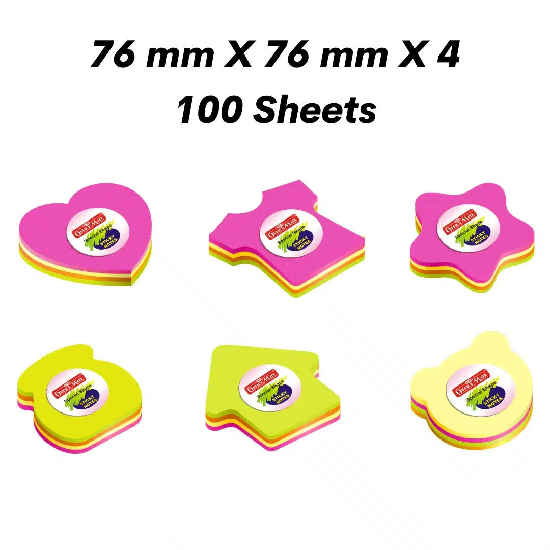Soni Officemate Multishape Sticky Note Pads bring versatility and vibrancy to your note-taking routine. This pack of 1 features fluorescent paper in various shapes, providing 100 sheets to accommodate a range of creative and practical uses. Whether it’s a quick reminder, important task, or an expressive doodle, these sticky notes are designed to capture attention and add a burst of color to your workspace. The multishape design allows for flexibility in conveying messages, making these sticky note pads an essential tool for organization and communication. Elevate your productivity with the eye-catching appeal of Soni Officemate Multishape Sticky Note Pads.