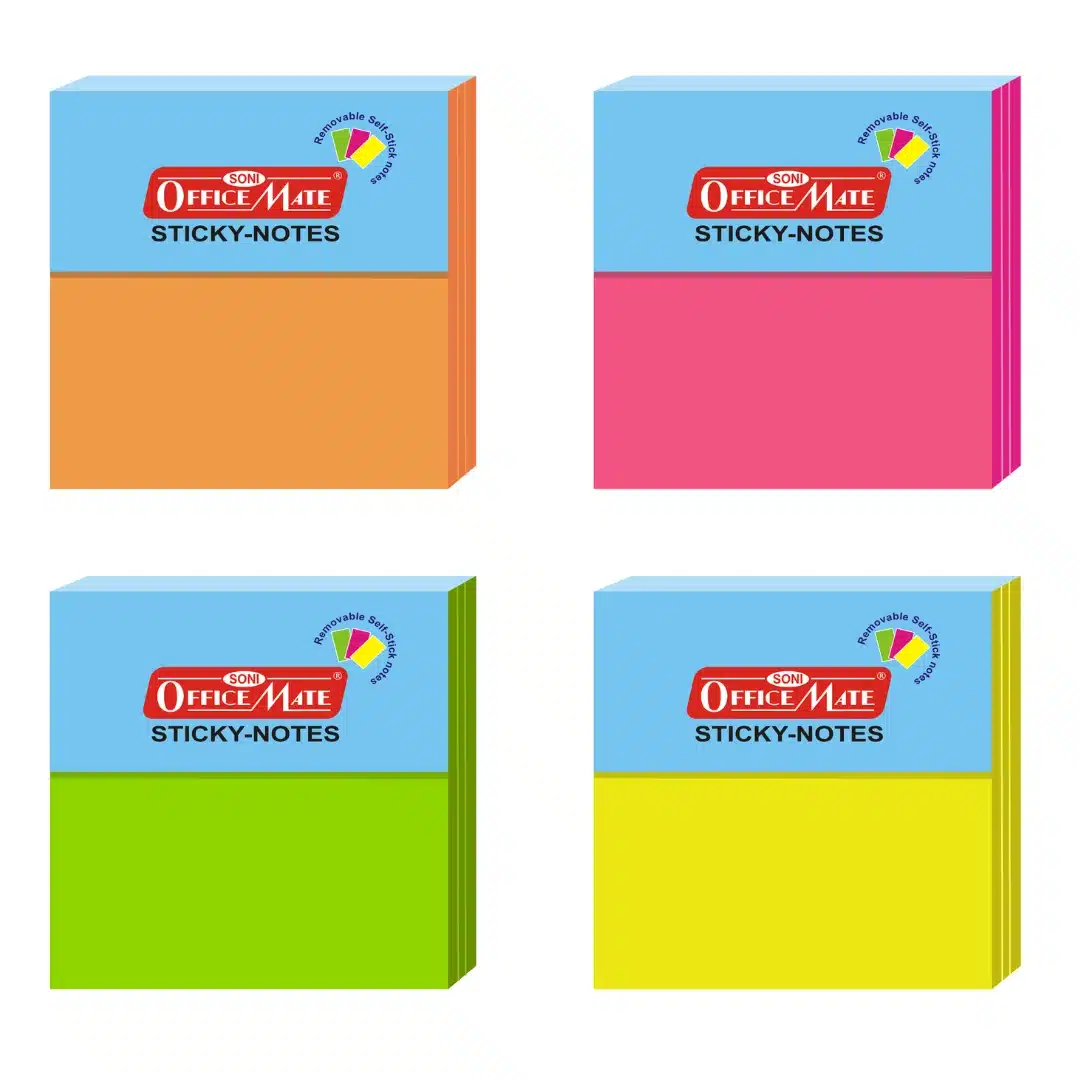 Soni Officemate Sticky Note Pads offer a convenient and colorful solution for your note-taking needs. This particular product features fluorescent paper in a 76 x 76mm size, providing ample space for jotting down important reminders, tasks, or messages. The pack includes one set of sticky note pads, making it a practical and essential addition to any office or workspace. The vibrant colors of the fluorescent paper not only grab attention but also add a touch of creativity to your notes. Whether you’re organizing your tasks or leaving a quick message, Soni Officemate Sticky Note Pads are designed to enhance productivity in a visually appealing way.