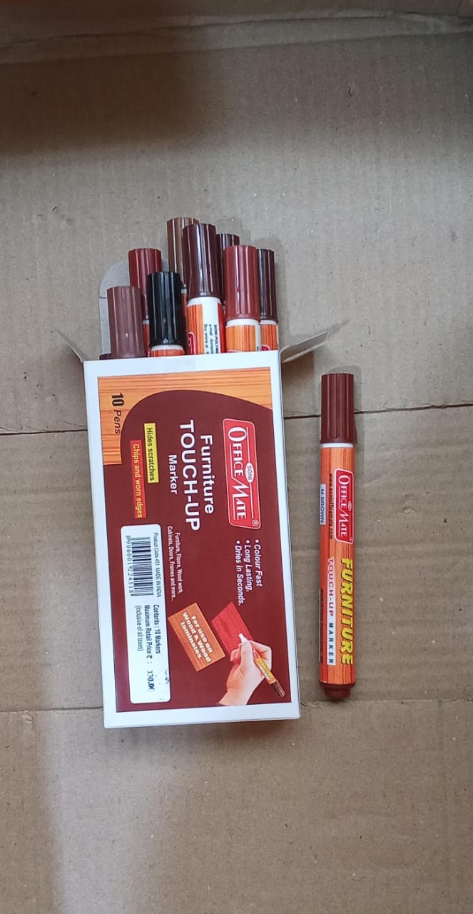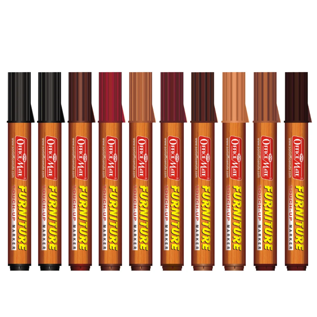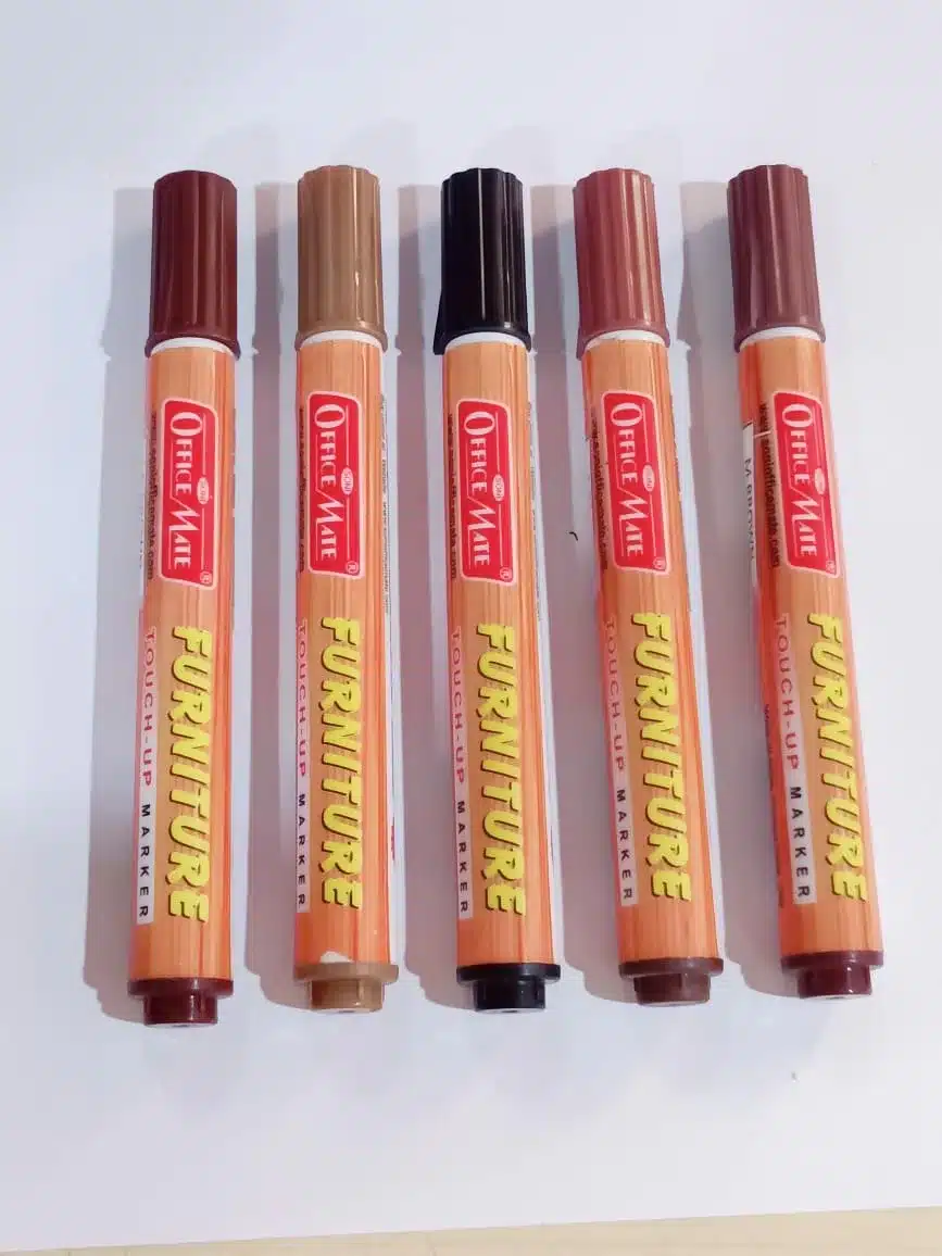 To match common furniture finishes, we provide furniture touch-up markers in a variety of wood-tone colours. Light oak (blonde wood), medium brown, dark brown (walnut), cherry/reddish brown, mahogany, black, and occasionally white or grey for painted furniture are among the colours that they typically come in sets of. For example, six markers in a popular set could range in colour from very light tan wood to nearly black. With these choices, you can choose the colour that most closely matches your furniture or even mix two colours by layering one on top of the other for a more accurate match.