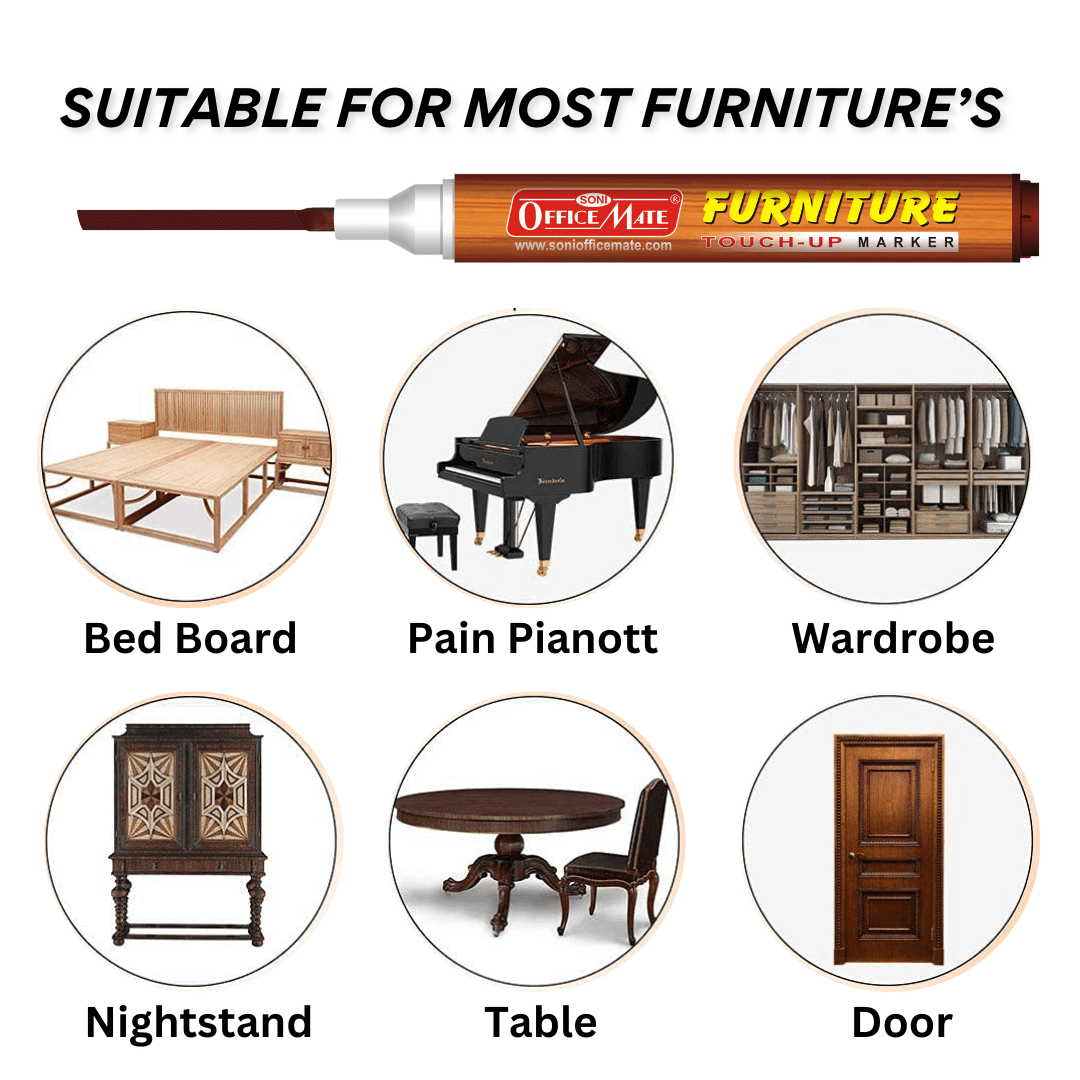 Indeed, these markers are made especially to help hide and fix scuffs and scratches on wood surfaces, including cabinets and furniture. They are loaded with wood-tone ink, which, when used, matches the colour of the surrounding wood by blending into the scratch. The marker effectively "restores" the wood's appearance by colouring in the faint scratch or worn area, making the flaw much less obvious. It's an easy way to improve the appearance of scratched furniture. It will camouflage the scratch by matching the colour of the wood grain if you simply select the shade that is closest to your furniture (oak, cherry, walnut, mahogany tones, etc.).