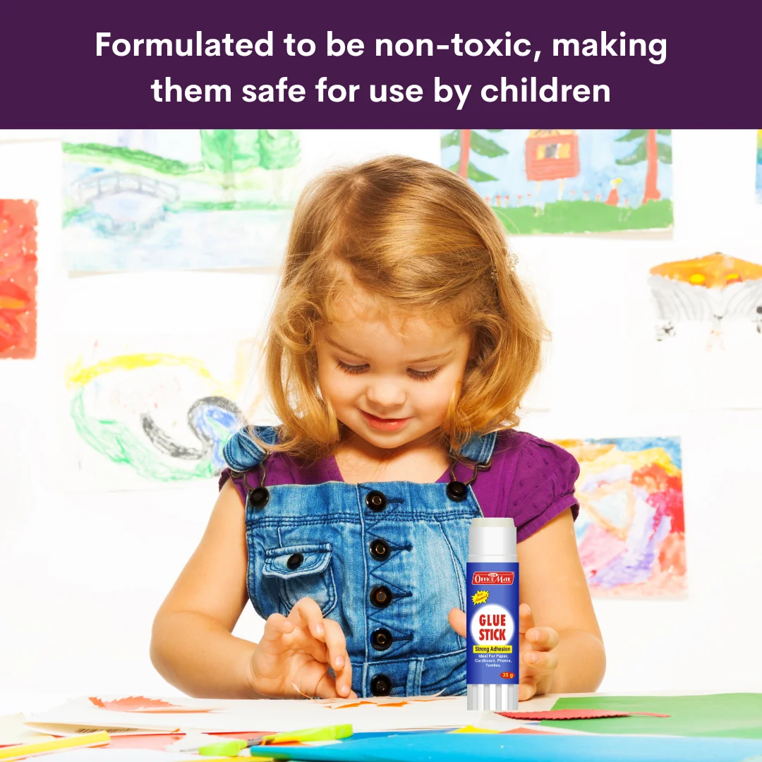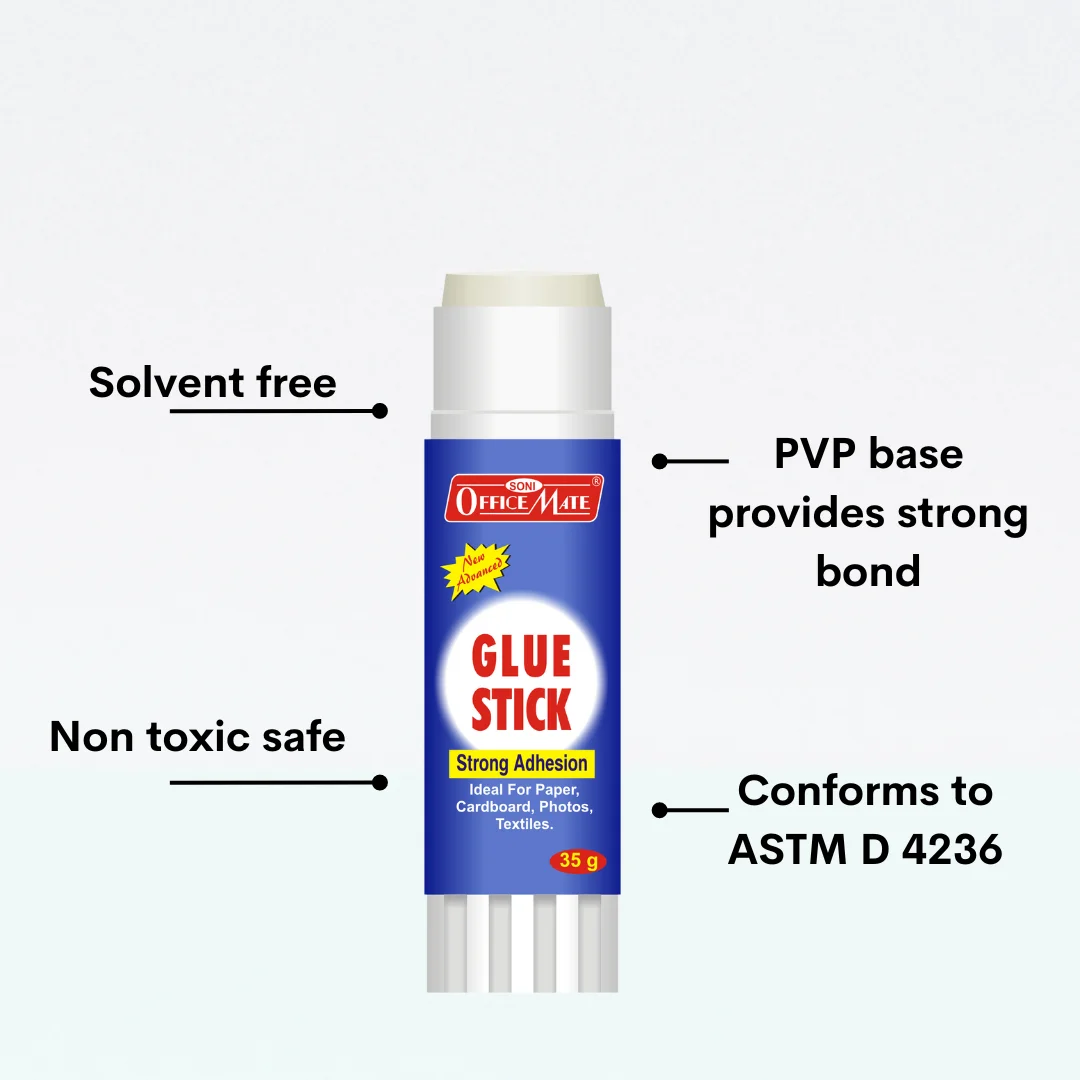 Made from non-toxic, safe chemicals, free from solvents and firmly sticking to the ASTM D-4236 standards, sticking anything now becomes a very strong bond that will last very long with our Glue Stick.