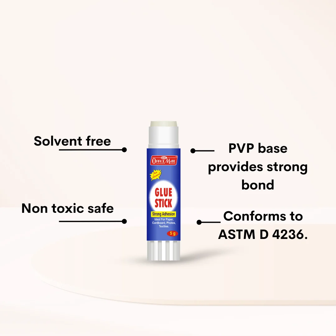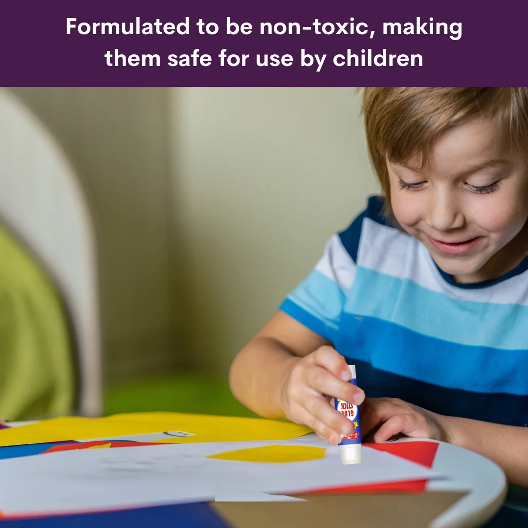 Made from non-toxic, safe chemicals, free from solvents and firmly sticking to the ASTM D-4236 standards, sticking anything now becomes a very strong bond that will last very long with our Glue Stick.