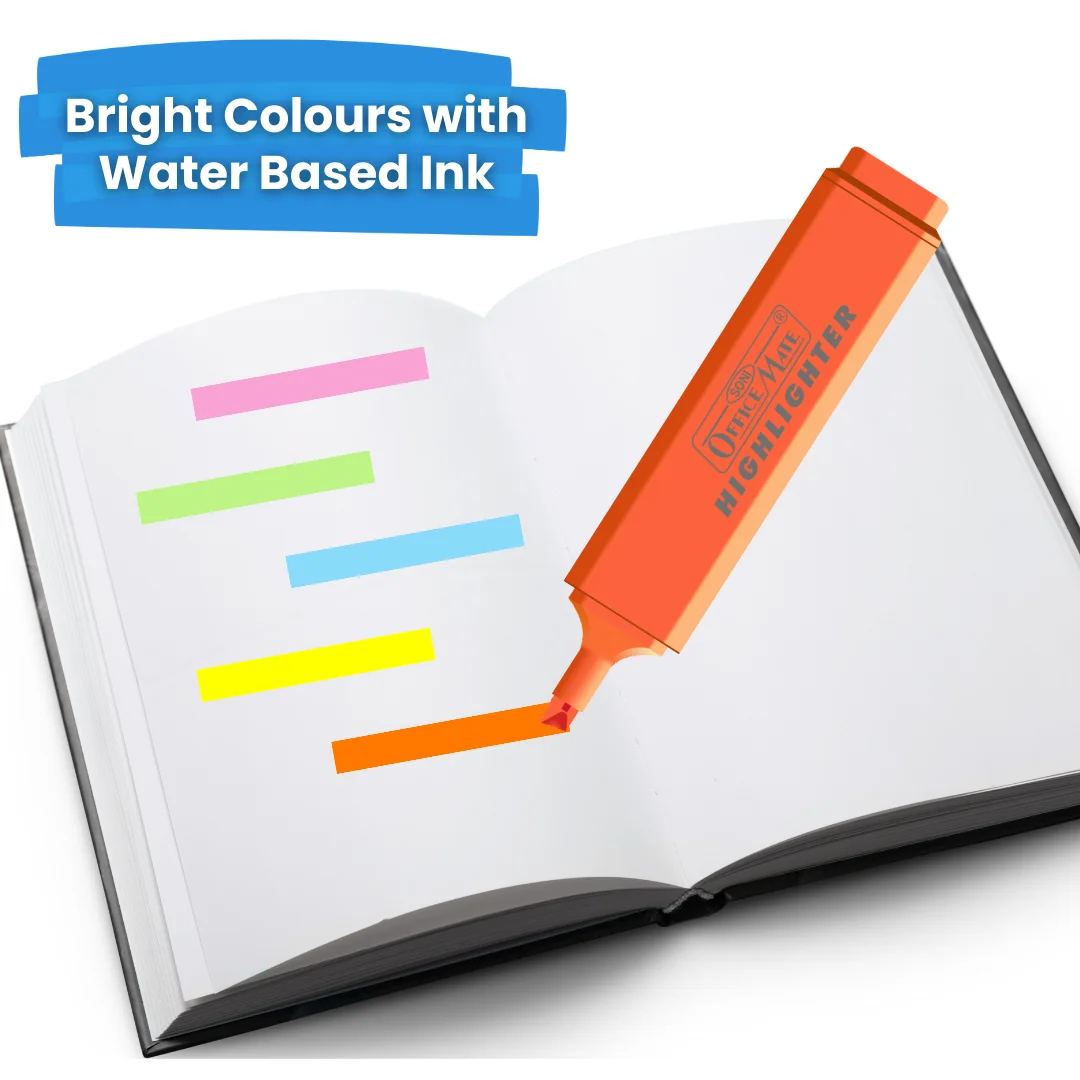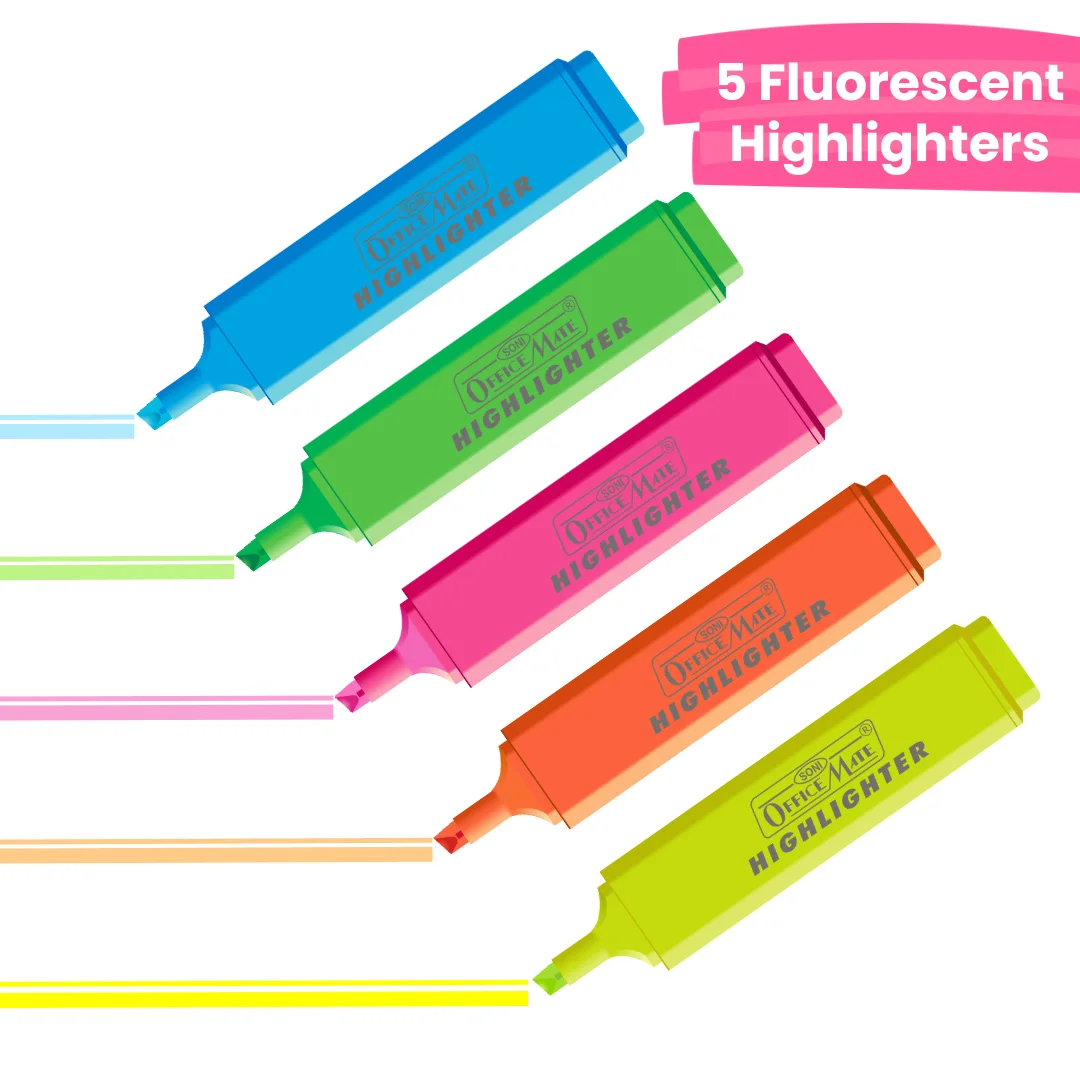 Highlighters pack of 5 delivers bright, eye-catching colors and a smooth application. The chisel tip design is perfect for both highlighting and underlining.