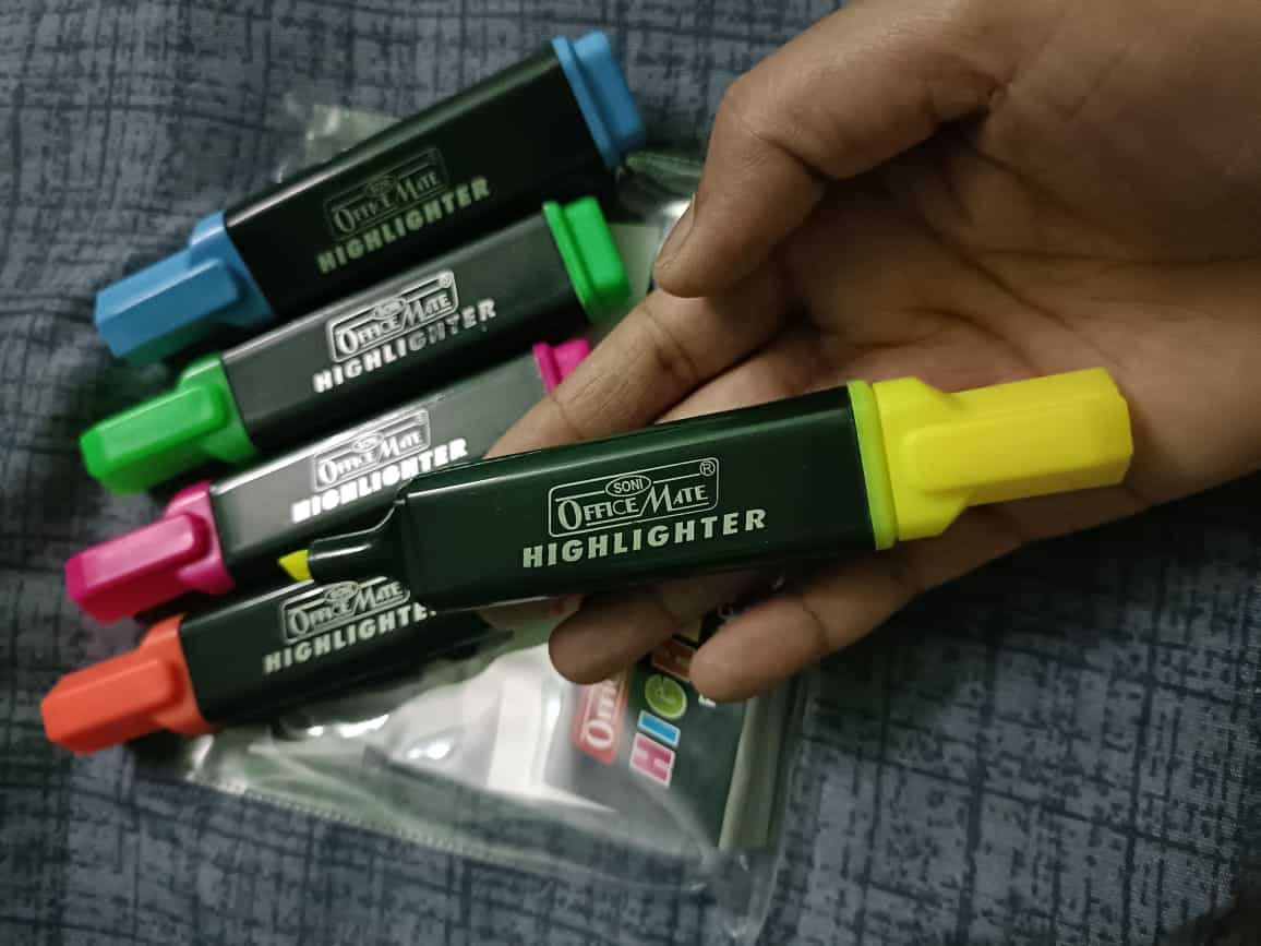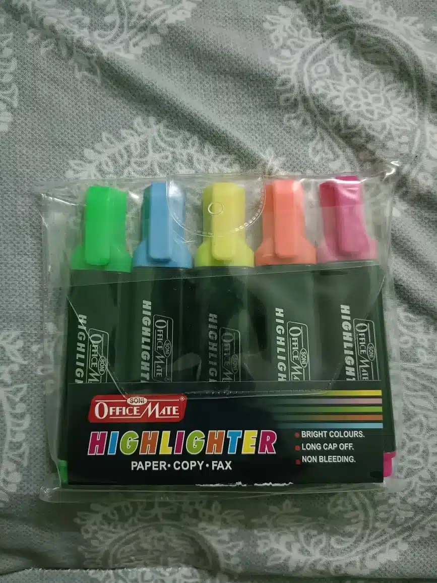We have options for both pastel and fluorescent colours. Six bright fluorescent colours (for that bright neon look) and six gentle pastel colours are included in our standard set. Regardless of your preference for soft pastel hues or striking neon highlights, you can select the Soni Officemate highlighter pack that best fits your look.