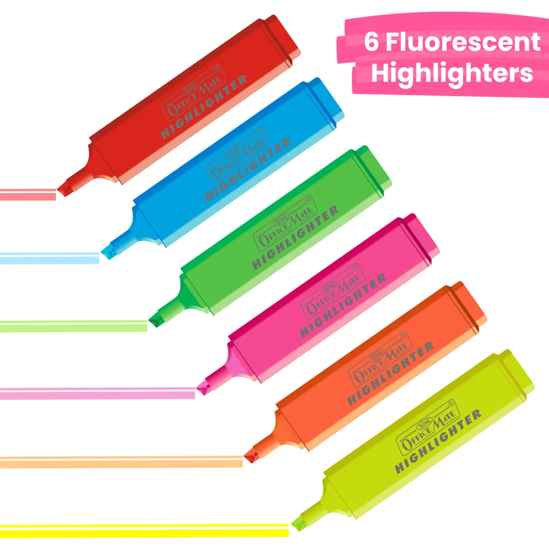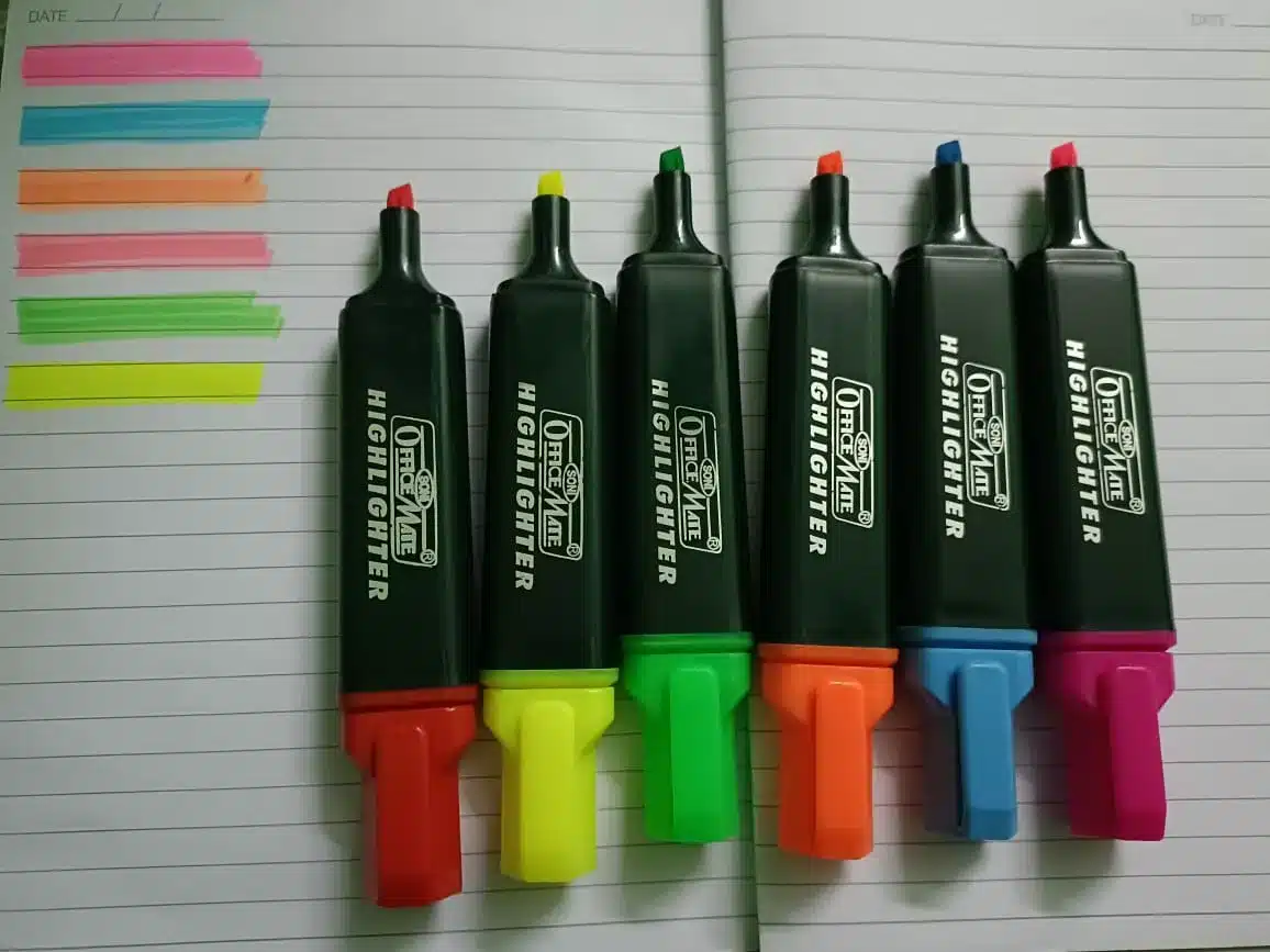 We have options for both pastel and fluorescent colours. Six bright fluorescent colours (for that bright neon look) and six gentle pastel colours are included in our standard set. Regardless of your preference for soft pastel hues or striking neon highlights, you can select the Soni Officemate highlighter pack that best fits your look.