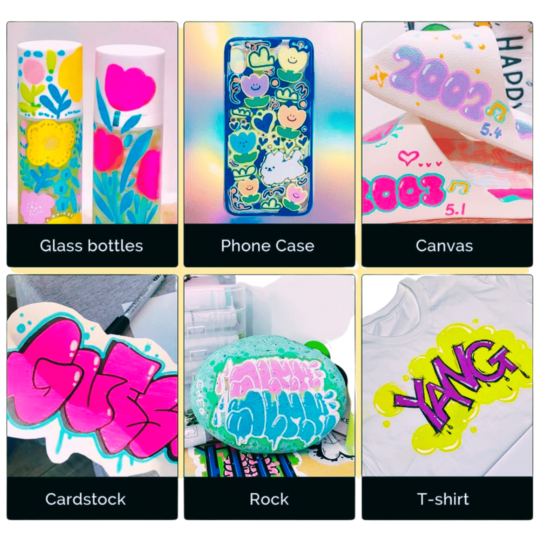 Absolutely! Our paint markers are super versatile and come in different tip sizes to suit your needs. If you're working on detailed designs or fine outlines, our fine-tip markers are perfect—they give you precision and control. For bigger, bolder strokes or coloring larger areas, we also offer medium and jumbo tips. No matter which size you choose, all our markers use the same high-quality, vibrant paint ink that sticks well and dries fast. Whether it’s for art, crafts, or labeling, you’ll find a tip size that fits your project perfectly.