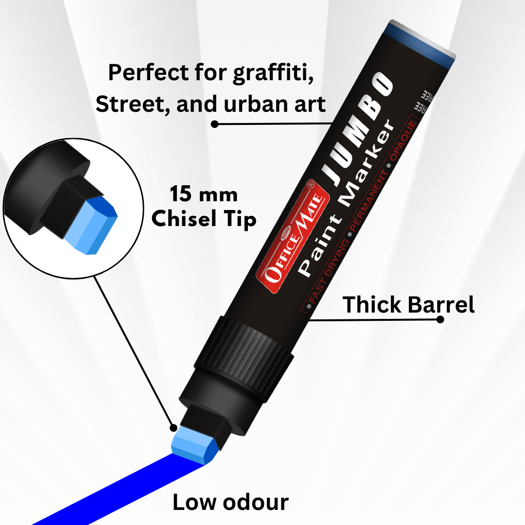 Jumbo Paint Marker featuring a chisel tip is great, for covering large surfaces. Its versatile strokes, ranging from broad to fine make it an excellent tool for projects that demand both details and bold lines.