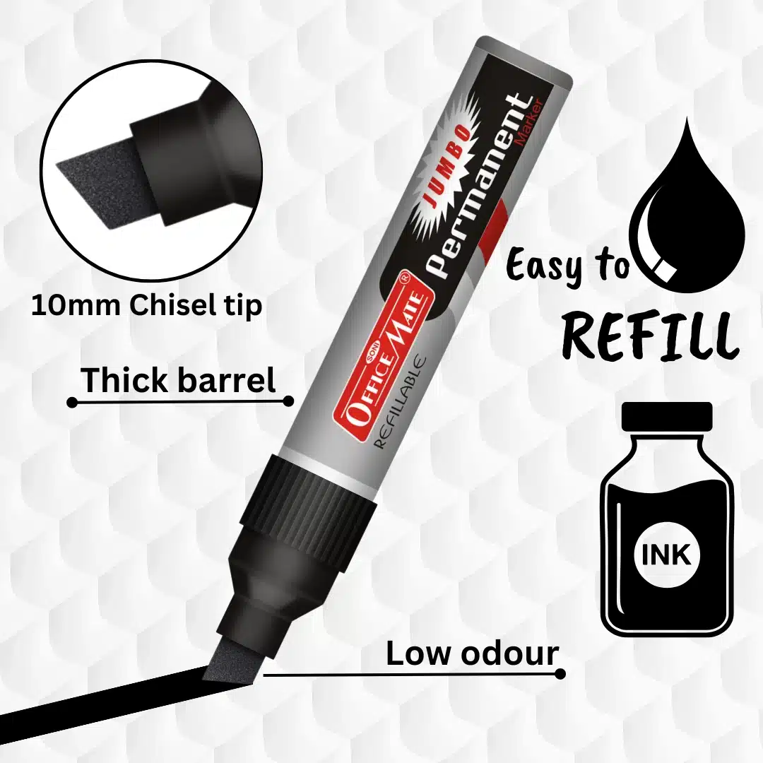 Yes, our permanent markers are refillable, helping you cut down on waste and get more life out of each marker. Refilling is simple—just use our Soni Officemate Permanent Marker Ink. Sticking with the recommended ink helps maintain the same smooth performance and bold color every time you refill.