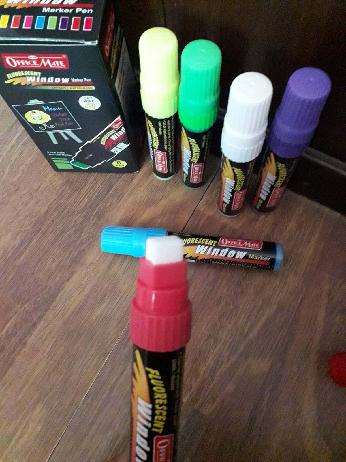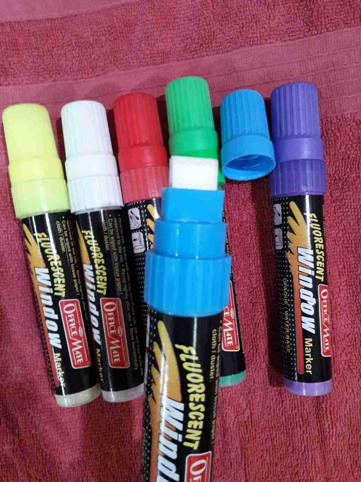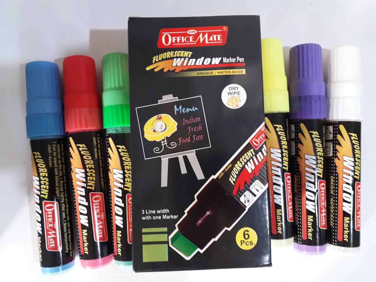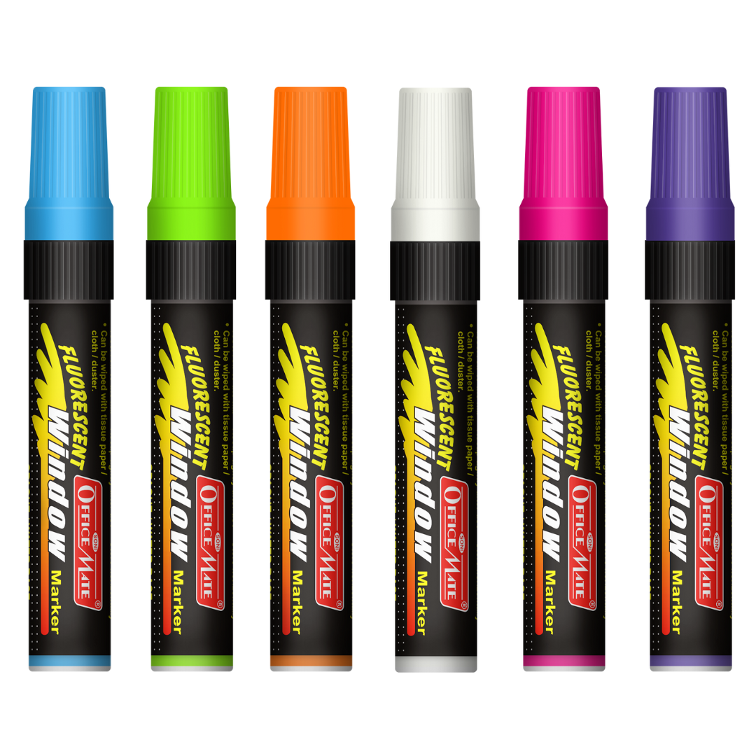 1. Jumbo Fluorescent Window/Chalk Marker (6pcs), features fluorescent colors: Blue, Orange, Green, Pink, White, and Violet, for striking and vivid displays.