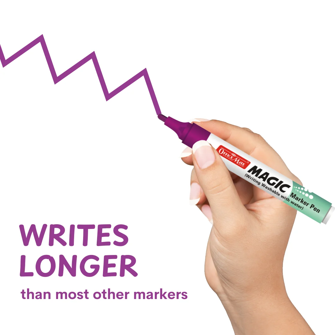 Magic Markers in purple and pink are fantastic! They leave vibrant, temporary marks that wash off easily with water. Perfect for all kinds of surfaces and projects—great for both fun and practical use!
