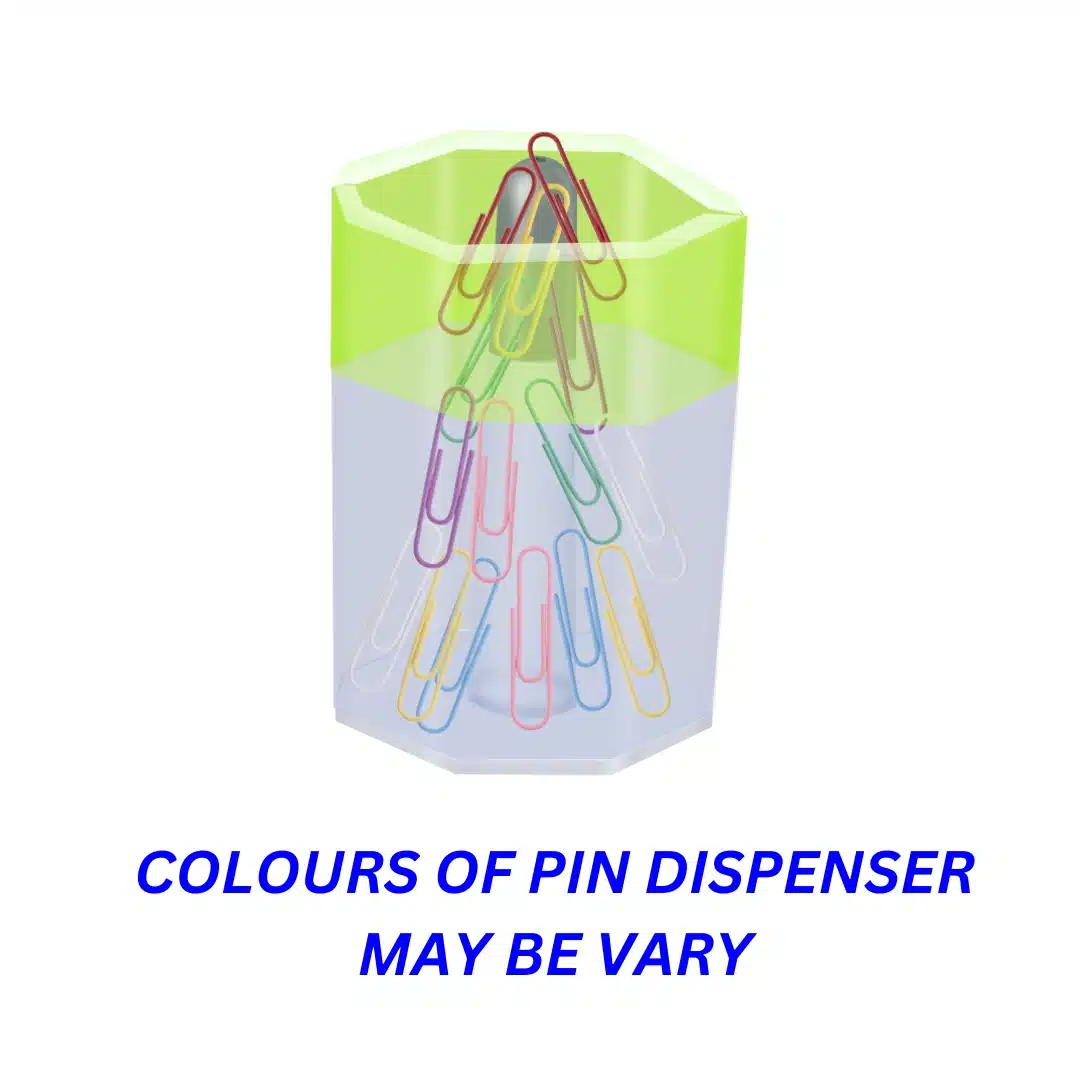 The dispenser typically does not come pre-filled with pins or clips (unless specified in a special bundle). It is sold as an empty organizer. This allows you to fill it with your preferred type of pins or paper clips. Many people already have a stash of pins/clips and just need a way to store them – that’s what this product provides. By not including pins or clips by default, we also keep the price focused on the organizer itself. Be sure to purchase or use your existing supply of paper clips or push pins to fill the dispenser when you receive it.