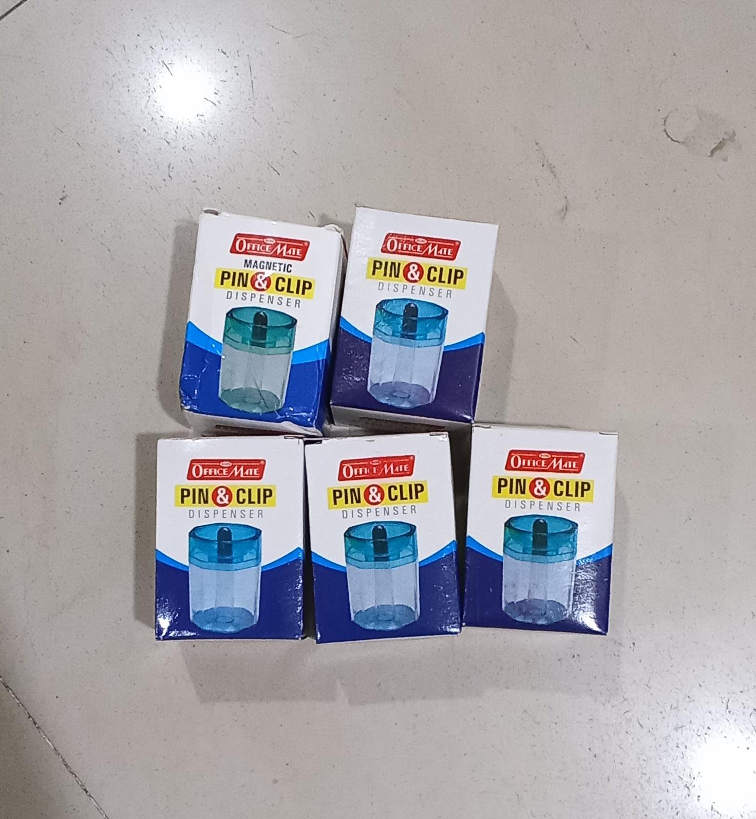 Our dispenser is designed to hold up to 100 standard-size pins (like push pins) or about 20–25 paper clips at once in the magnetic holder area. If you’re using smaller binder clips or other tiny magnetic items, it can hold a bunch of those too. The top magnetic surface keeps a good number handy for immediate use, and any extras can sit in the removable base compartment. It’s plenty of capacity for typical office or classroom needs.
