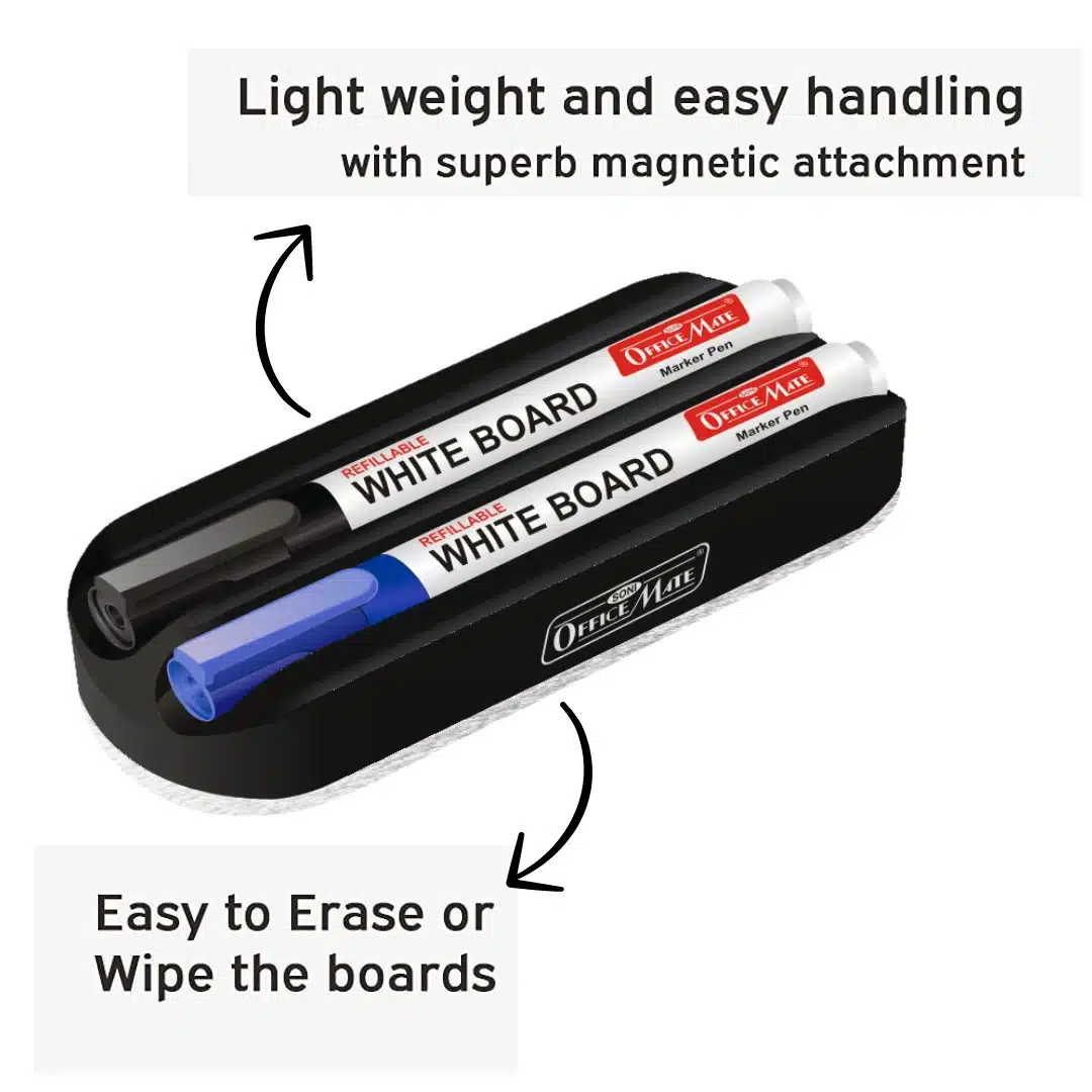 The magnetic duster is so easy to use, and the two markers are a great addition! It wipes off the board clean with no streaks.