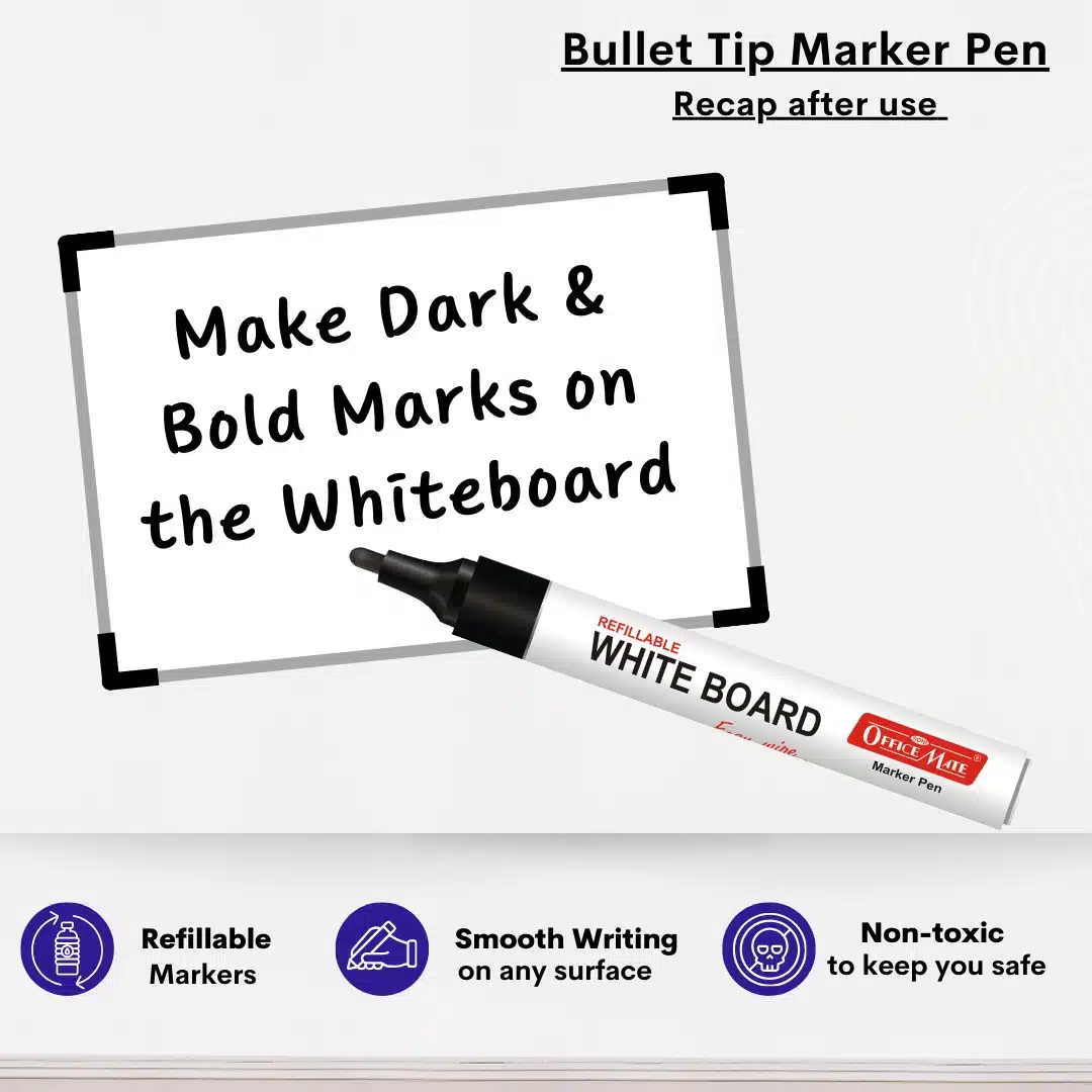 Whiteboard Marker is Refillable, Easy, dry wipe off from various Surface, Low odor, available on bright colors.