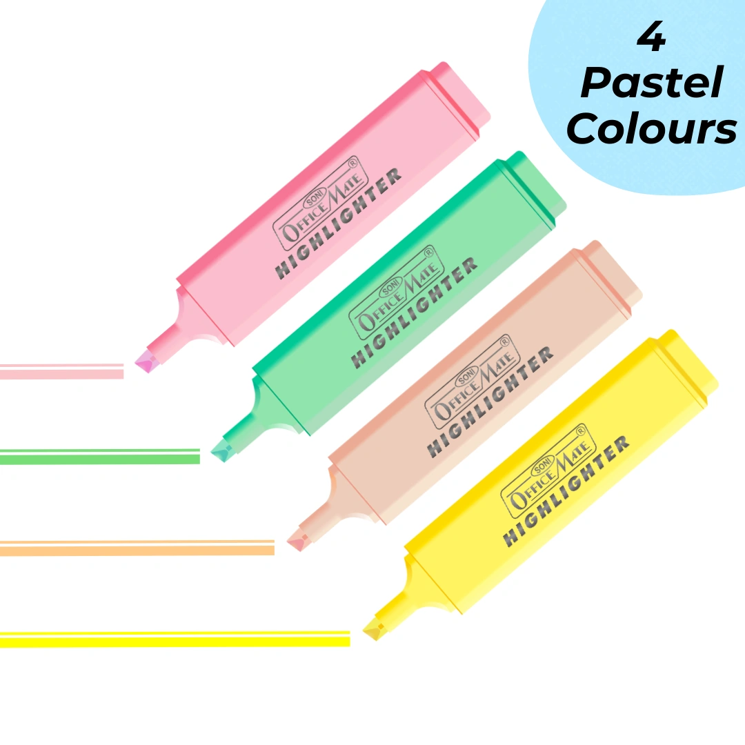1. Pastel Highlighters (4pcs) – Includes pastel colors: Yellow, Pink, Green, and Orange.