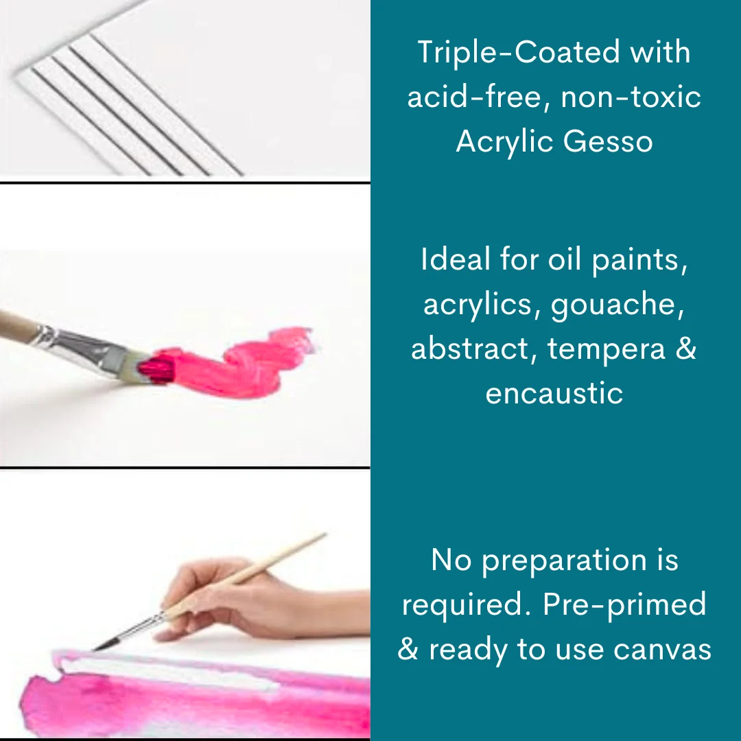 4. Triple-Coated with Acid-Free, Non-Toxic, Anti-Fungal Surface for Safe & Long-Lasting Artwork, Acrylic Gesso for Superior Paint Adhesion