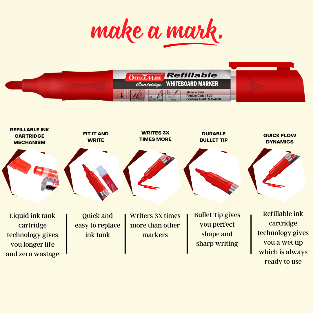 These cartridges are typically made for specific refillable marker models, often from the same brand, like Soni Officemate’s refillable whiteboard markers. They may not fit markers from other brands unless those markers are designed to use the same cartridge size. It’s best to use them with the markers they are meant for. Using the matching cartridge guarantees a perfect fit and smooth ink flow.