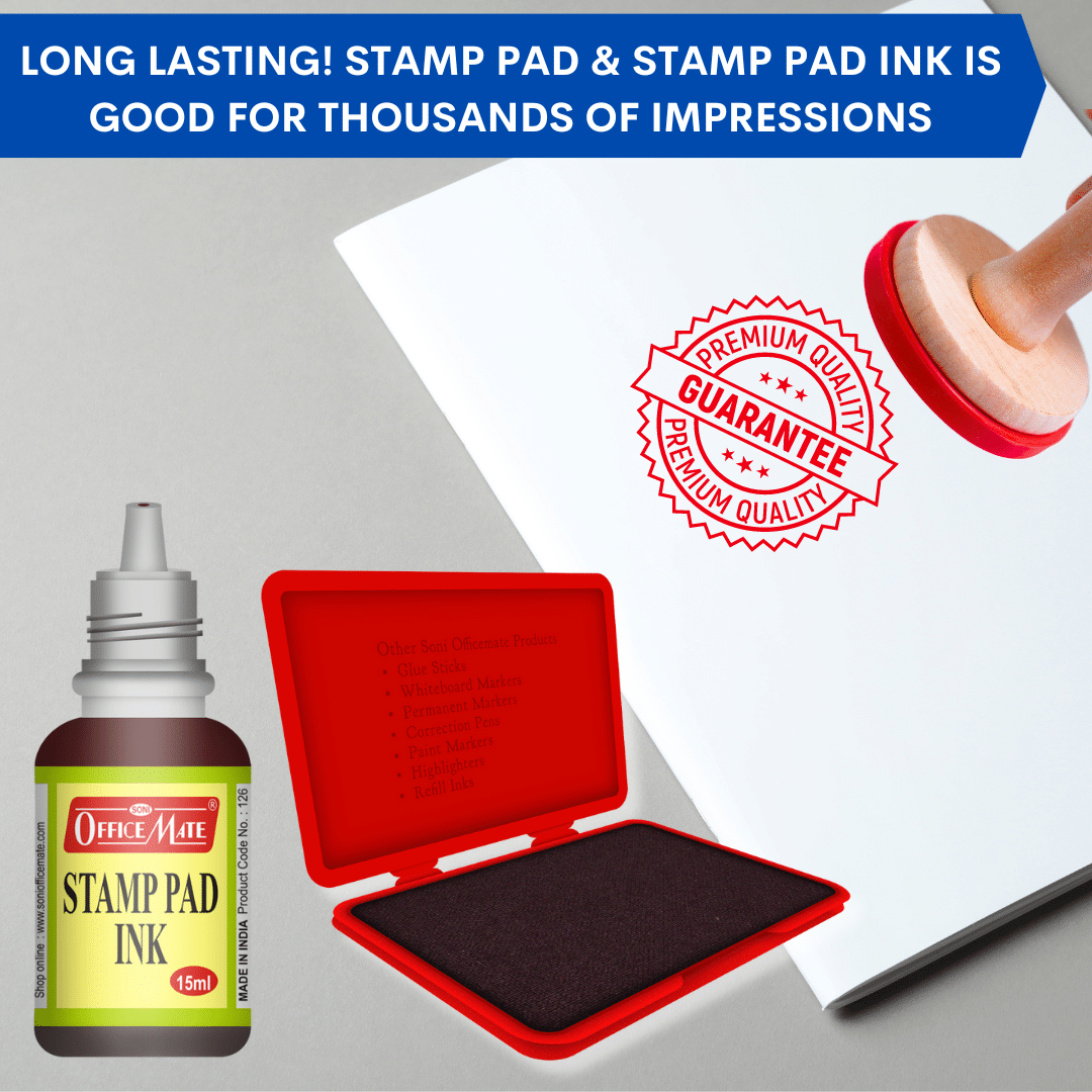 We offer Stamp Pad Inks in 15 ml, 100 ml & 500 ml sizes in a wide range of colors with excellent shelf-life & Superior Quality.