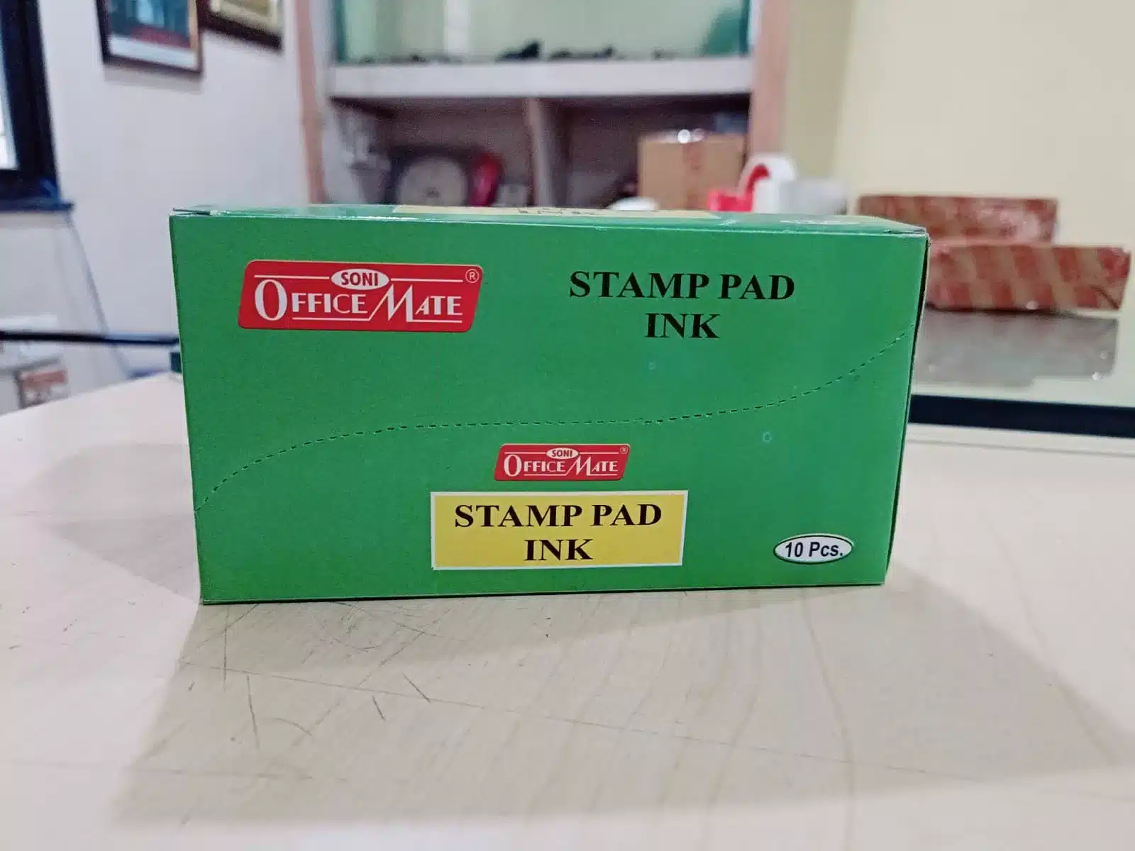 We offer a variety of colours for our stamp pad ink. Although black is the most widely used colour due to its polished appearance, we also have blue, red, green, and violet inks available. With these choices, you can select a colour that best suits your requirements, such as blue for official documents or red for urgent stamps. Our ink's quick-drying and fade-resistant qualities are consistent across all colours.