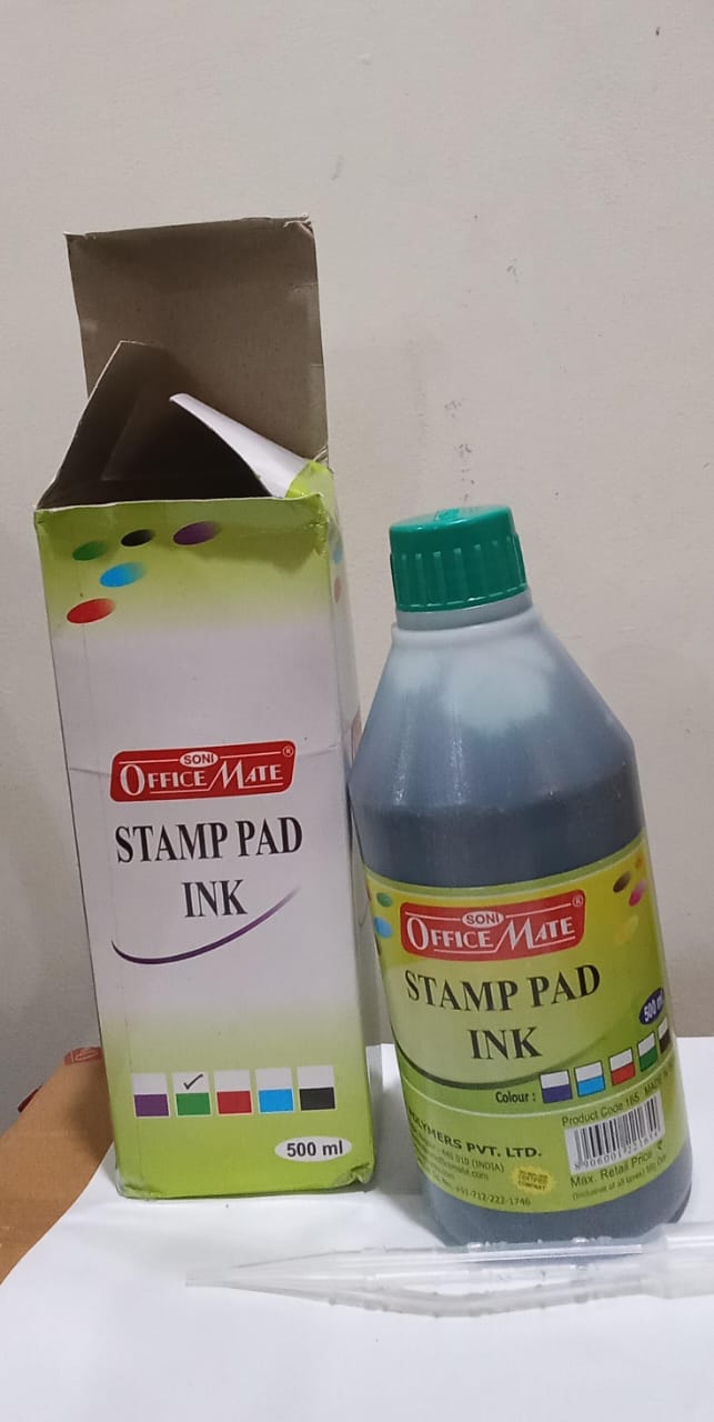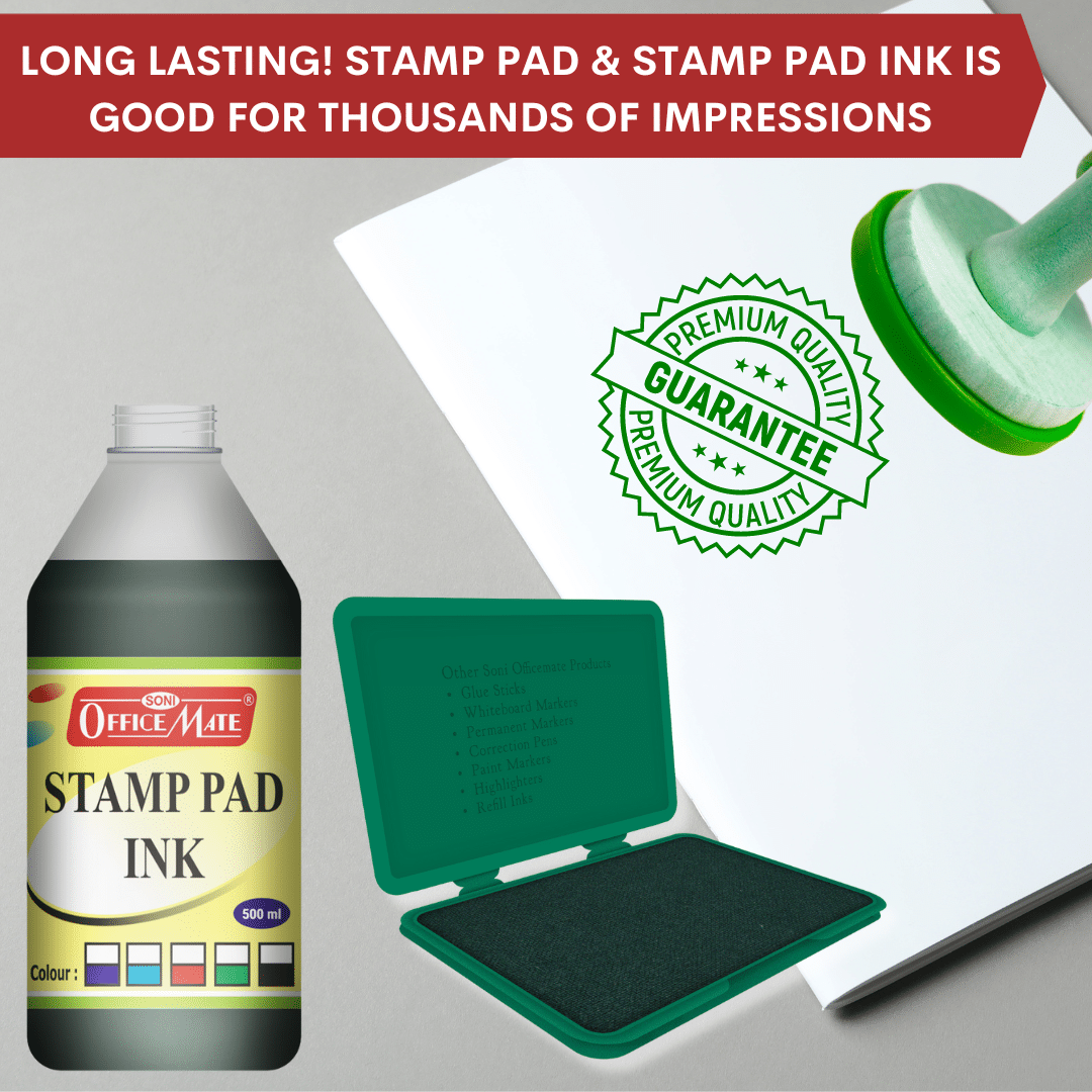 We offer a variety of colours for our stamp pad ink. Although black is the most widely used colour due to its polished appearance, we also have blue, red, green, and violet inks available. With these choices, you can select a colour that best suits your requirements, such as blue for official documents or red for urgent stamps. Our ink's quick-drying and fade-resistant qualities are consistent across all colours.