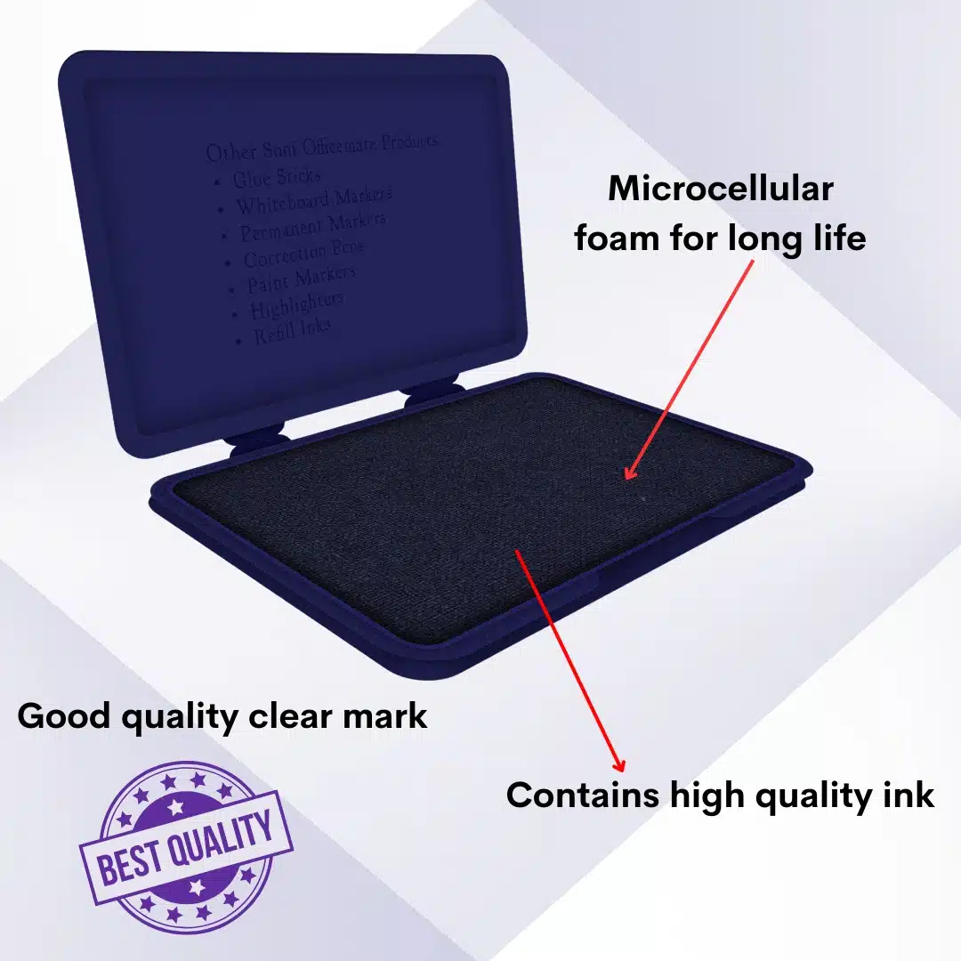 We know the magnitude of wear and tear the Stamp Pads have to go through. Now here is a Stamp Pad that will never get tired. it’s tough plastic body makes it look very elegant and the micro cellular foam allows it to go on and on so keep stamping,our stamp pads tired