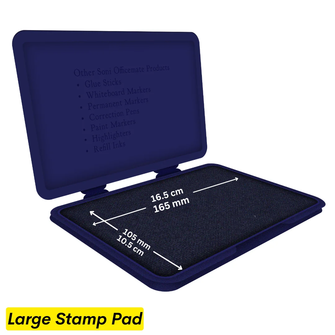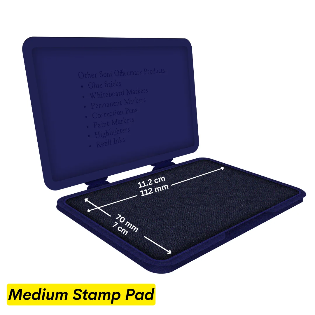 Indeed, we provide stamp pads in a range of standard ink colours. Black, blue, red, green, and purple are the most widely used colours. The designated colour is pre-inked on each pad. The hues are vivid and long-lasting. Red may be used for "URGENT" or emphasis stamps, for instance, while black and blue are frequently used for official documents. You can also use our refill inks on an un-inked pad to make a custom colour pad if you require a different colour or speciality ink.
