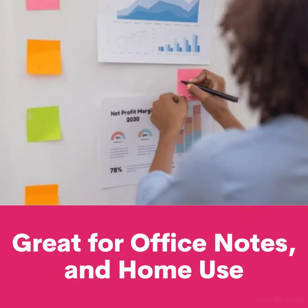 We provide larger rectangular pads (such as 3 x 4 or 3 x 5 inches), smaller bookmark/tab sizes, and sticky notes in the typical square size (about 3 x 3 inches). Our sticky notes come in a variety of vivid colours, including pink, orange, neon green, blue, and more, so you're not just limited to the traditional canary yellow. For a softer look, we even have pastel colours. If you want to colour-code your notes, some packs come in multiple colours. Therefore, we have options whether you want a rainbow of colours or traditional yellow.