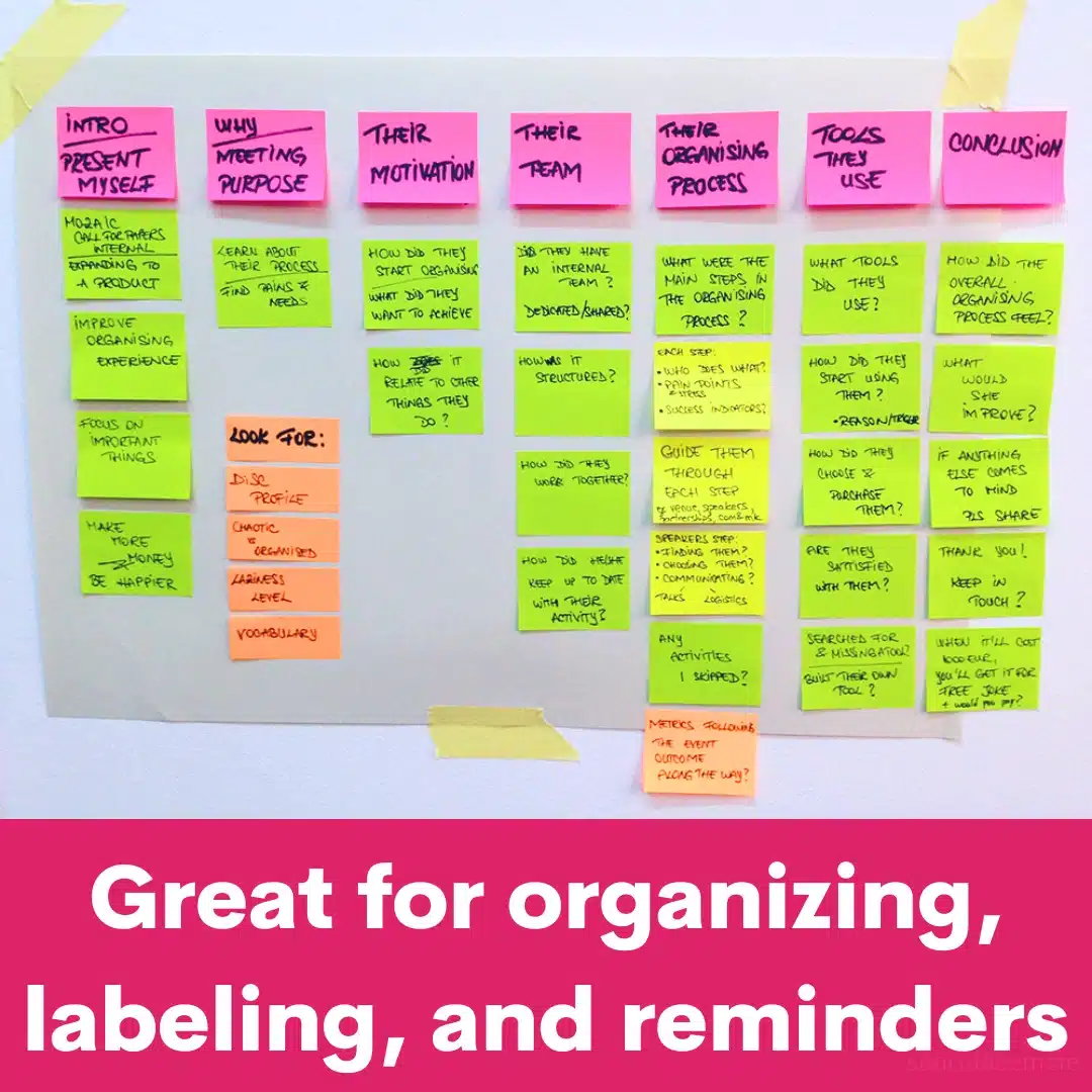 Convenient size of 50 x 76 mm, it fits perfectly on desks, planners, and notebooks.