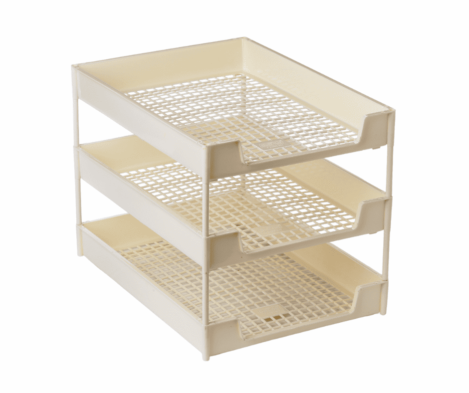 Though it comes with three stacked trays rather than two, a three-compartment office tray is very similar to a two-compartment one. On your desk or shelf, it is used to arrange papers, files, letters, and notebooks. Papers can be sorted into three categories using three tiers, such as "To Do," "In Progress," and "Done," or separate trays for various clients or projects. In essence, it is an office organiser that helps keep your papers organised vertically and separate, preventing messy stacks from taking up your desk.