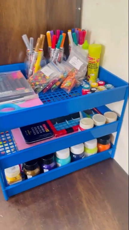 Any documents or flat objects that fit inside can be kept there. Printouts, letters, forms, and folders are frequently placed in the trays. If a tray is sufficiently sturdy, you can also place notebooks, notepads, tablets, or thin laptops on it. Some people keep one tray for incoming mail, another for completed paperwork, and a third for items that require signatures or work. If you add cups, you could even use them to organise small items (like paper clips, sticky notes, etc., though they might fall through if it's a mesh tray). However, it is primarily for A4 and letter-sized papers. Compared to a single or two-tier tray, the three compartments allow you to arrange your belongings somewhat more precisely.