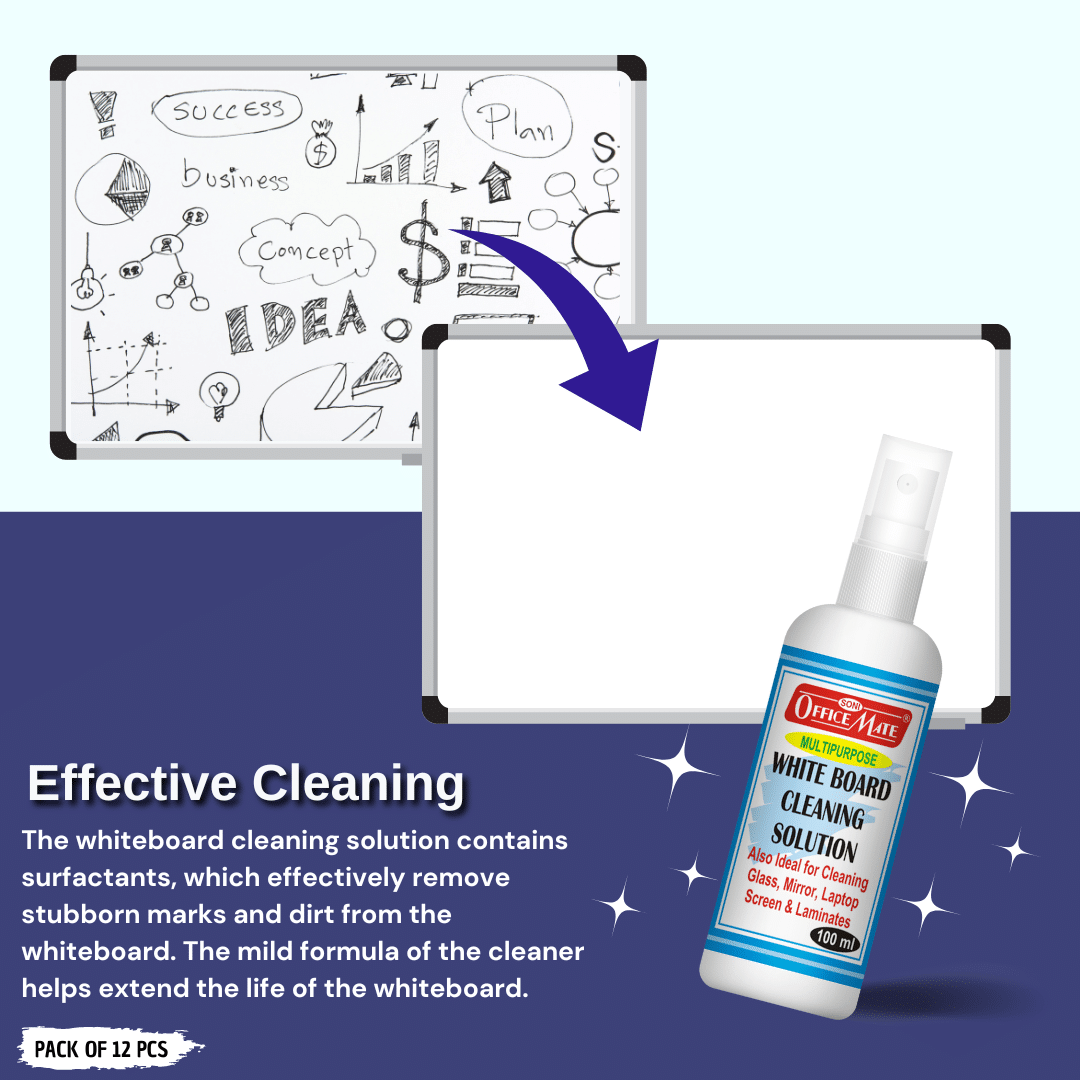 Whiteboard Cleaning Solution comes in a handy spray bottle pack which evenly spray and makes it easy to apply to your board.