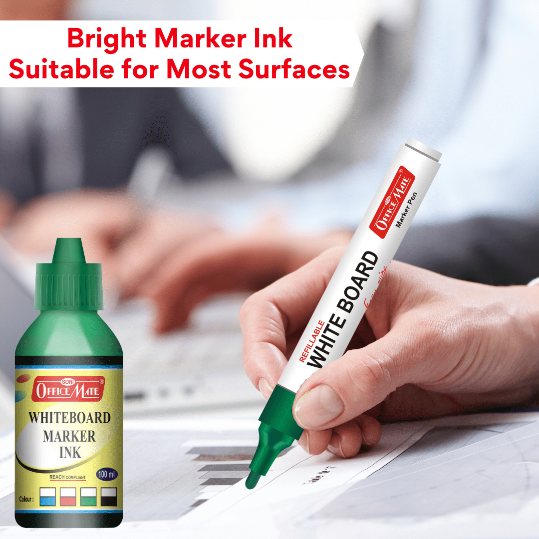 We suggest using this ink to refill Soni Officemate whiteboard markers, as it is specially designed for them. It provides top performance, including smooth writing, easy erasing, and no clogging. While the ink might also work with other refillable whiteboard markers, especially those using alcohol-based dry-erase ink, we cannot guarantee results with other brands. If you decide to try it, ensure that the other brand's marker is refillable. For the best results, stick to our markers and this ink.